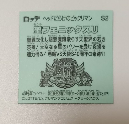 【 商品紹介 】 【まとめ発送OK】S2 聖フェニックスU ヘッドだらけのビックリマンチョコ 40th anniversary 1枚の出品になります。