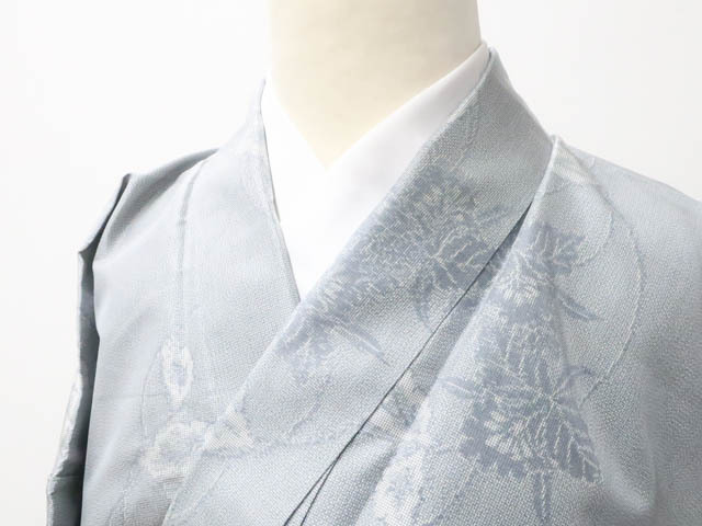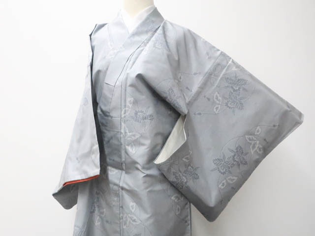 リサイクル商品のため、衿裏・胴裏スナップボタン汚れがございます。 左前袖と右後袖にしみがございますが着用可能なお品です。 地色は 灰です。 1枚目の画像が近いお色かと思われます。 素材は正絹です。 |