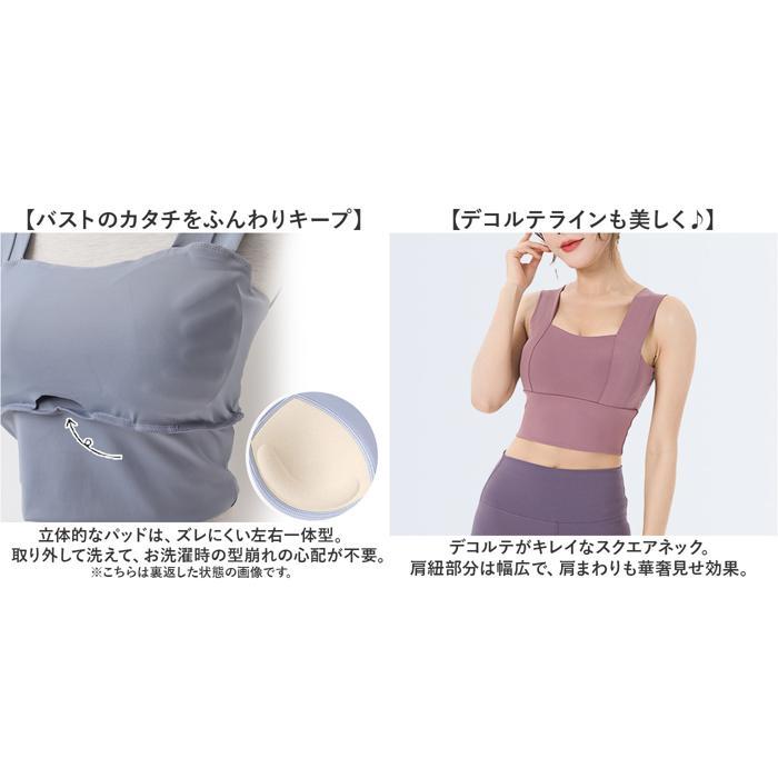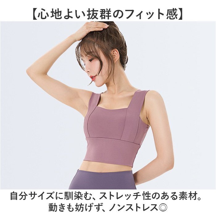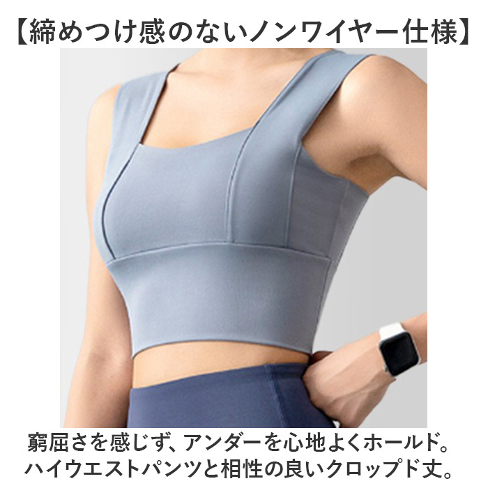 | 商品説明 | ・・【エクササイズのお供にぴったり】 ・動きやすく、アクティブシーンを快適に。カップ付きの「ヨガウェア」。 ・【心地よい抜群のフィット感】 ・自分サイズに馴染む、ストレッチ性のある素材。動きも妨げず、ノンストレス◎ ・【締めつけ感のないノンワイヤー仕様】 ・窮屈さを感じず、アンダーを心地よくホールド。ハイウエストパンツと相性の良いクロップド丈。 ・【バストのカタチをふんわりキープ】 ・立体的なパッドは、ズレにくい左右一体型。取り外して洗えて、お洗濯時の型崩れの心配が不要。 ・【デコルテラインも美しく♪】 ・デコルテがキレイなスクエアネック。肩紐部分は幅広で、肩まわりも華奢見せ効果。 ・【背中もすっきり、美しいシルエット】 ・後ろ姿がキレイなスクエアカットデザイン。ヘルシーな肌魅せが叶う♪ ・【お気に入りを選べるカラー】 ・ベーシックやアクセントになるカラーをラインナップ。洗い替え用に色違い揃えも! |