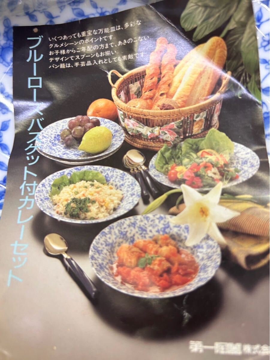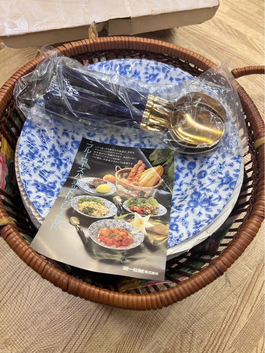 A6-36 【未使用】第一陶器 ブルーローズ バスケット付き カレーセット 洋食器 プレート スプーン カレー皿