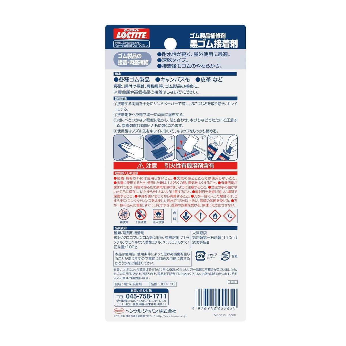 パッケージ内容:LOCTITE(ロックタイト) 黒ゴム接着剤 100g - ゴム製品、キャンパス布、皮革などの接着・靴底の肉盛り補修剤