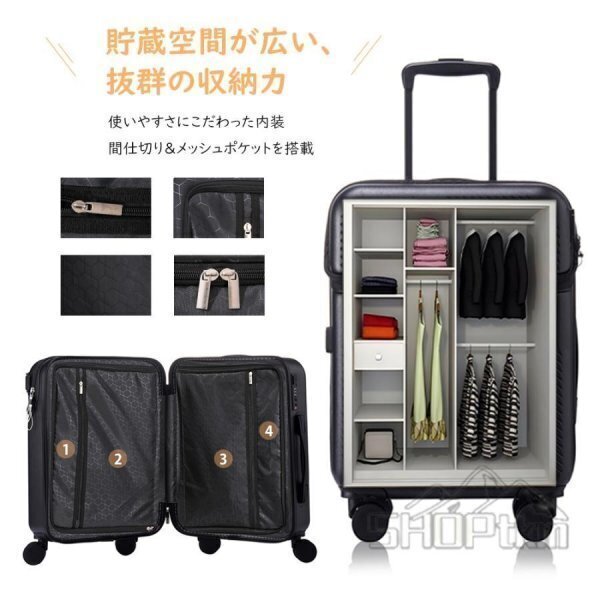 スーツケース キャリーケース フロントオープン 機内持ち込み キャリーバッグ 軽量キャリー 拡張 40lおしゃれ ハード 静音かわいい Sサイズ