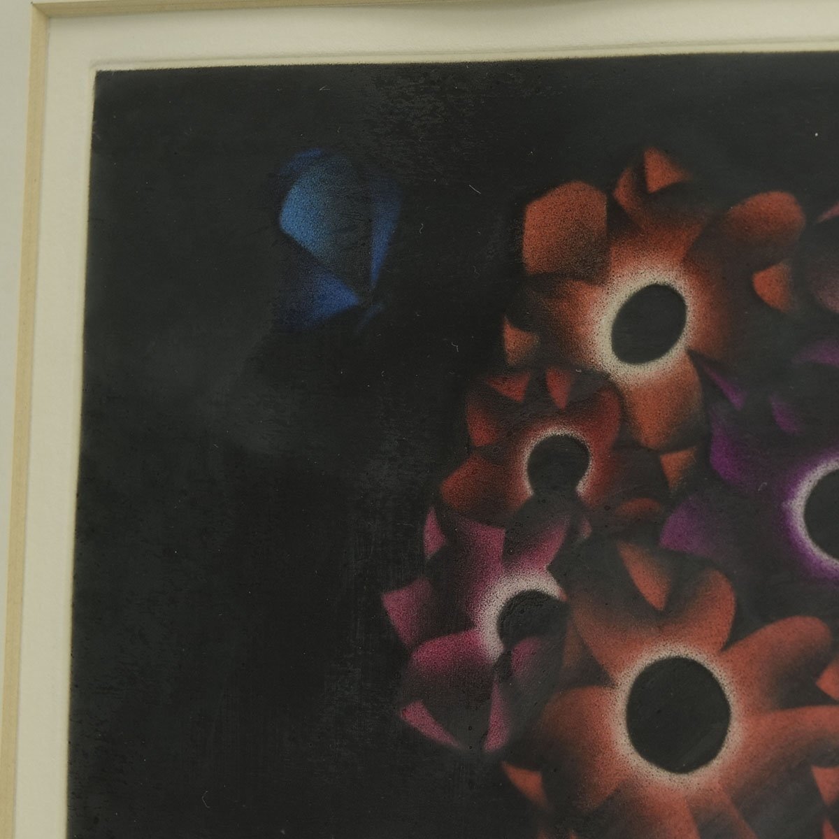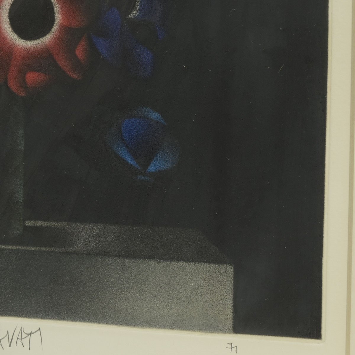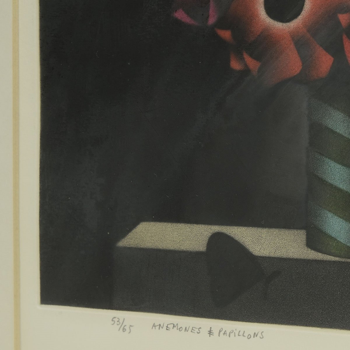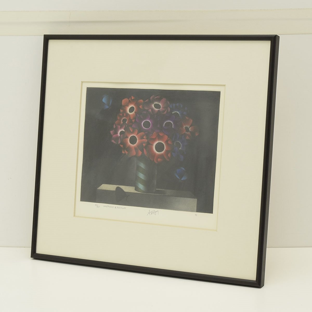 ●525607 送料込み MARIO AVATI (マリオ・アバチ) 「蝶とアネモネ」 銅板 メゾチント 53/65 直筆サイン 額装