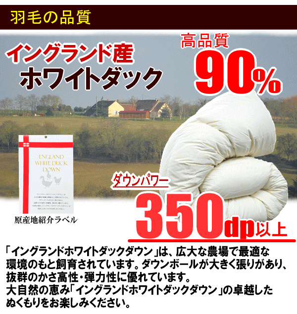 ■中身:イングランド産ホワイトダックダウン90% フェザー10%