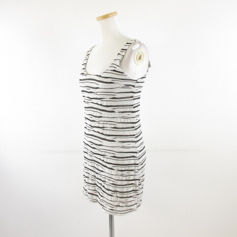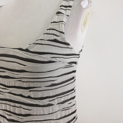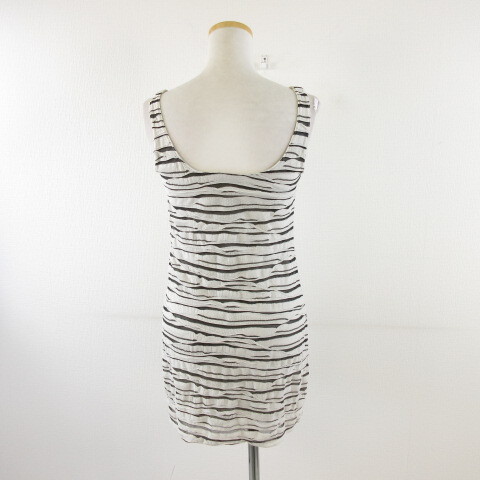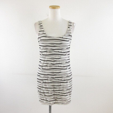 リエンダ rienda ノースリーブワンピース ミニ ボーダー ストレッチ グレー 黒 M *A867 レディース