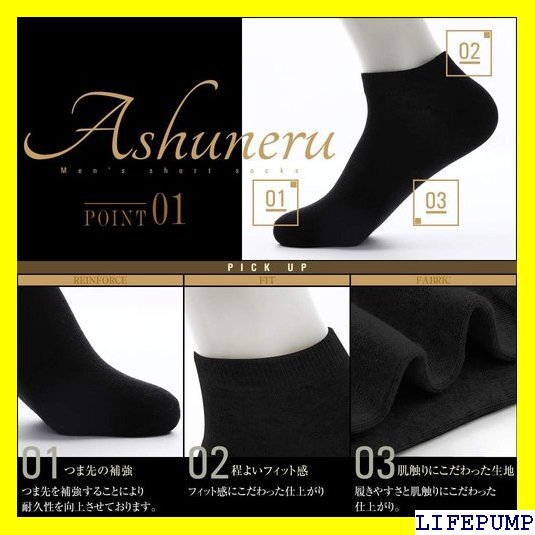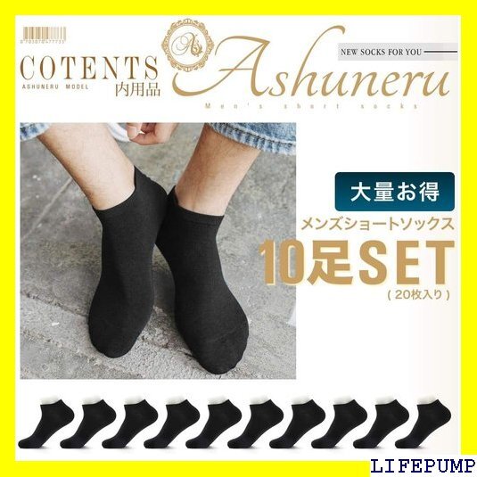 Ashuneru アシュネル 靴下 メンズ ショートソ 抗菌防臭加工 25cm〜27.5cm 10足セット 夏用 1315
