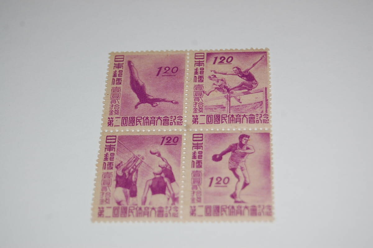1947.10発行 ハードル/飛び込み/円盤投げ/バレーボール各1.2圓