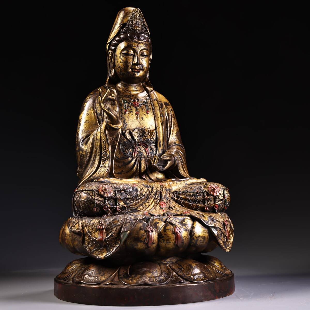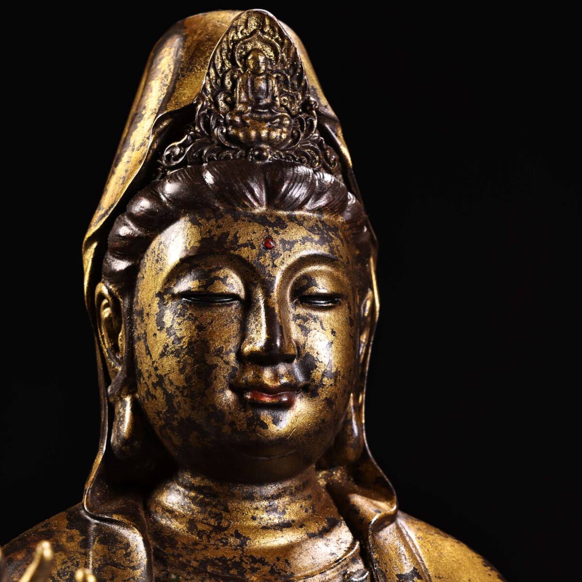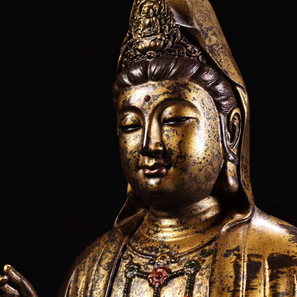 唐物 清 乾隆年製 純銅 全銅 泥金観音菩薩 仏像 奉納されていた 供養品 銅製品 銅器 極細工 古美術品 時代物 中国古玩 骨董品 D68