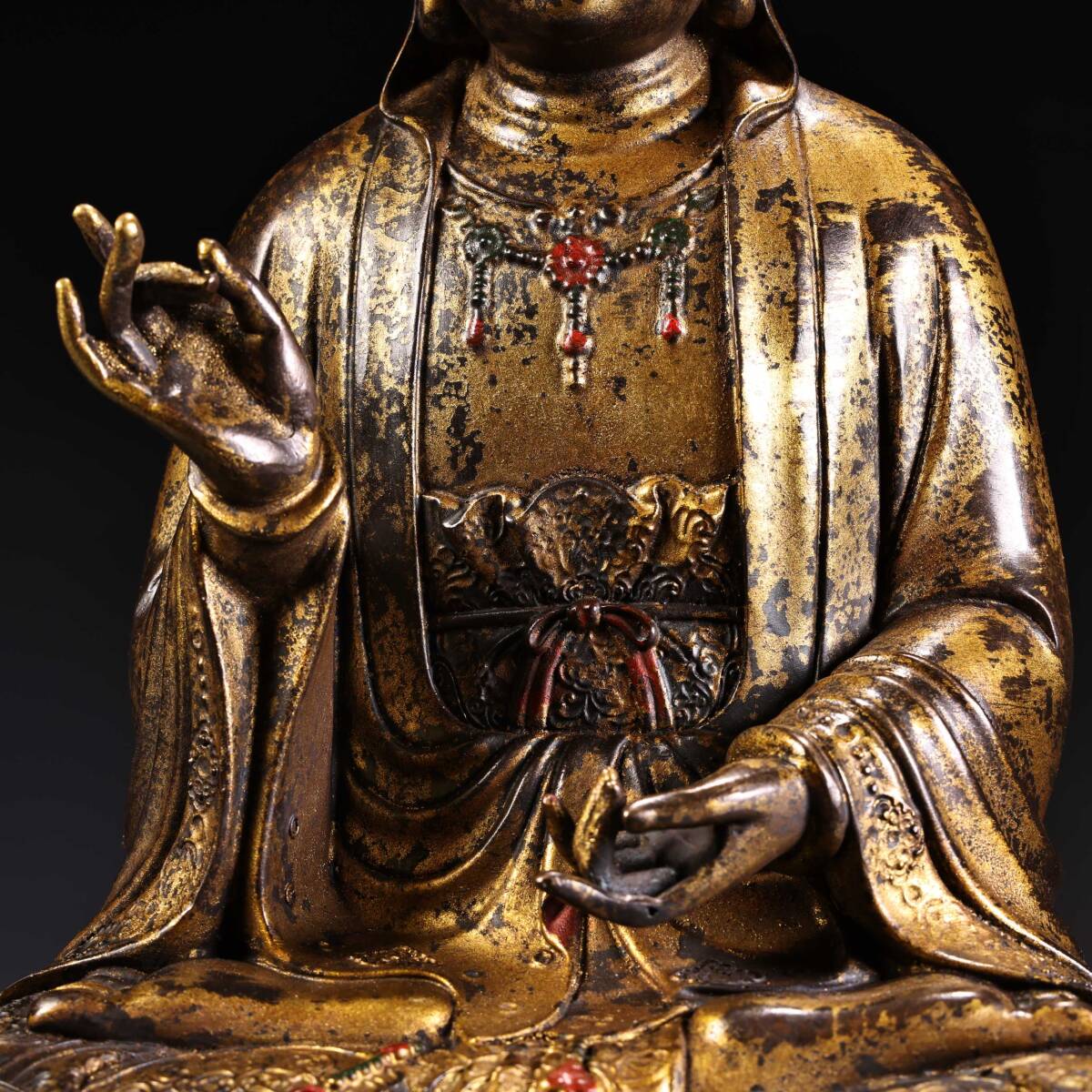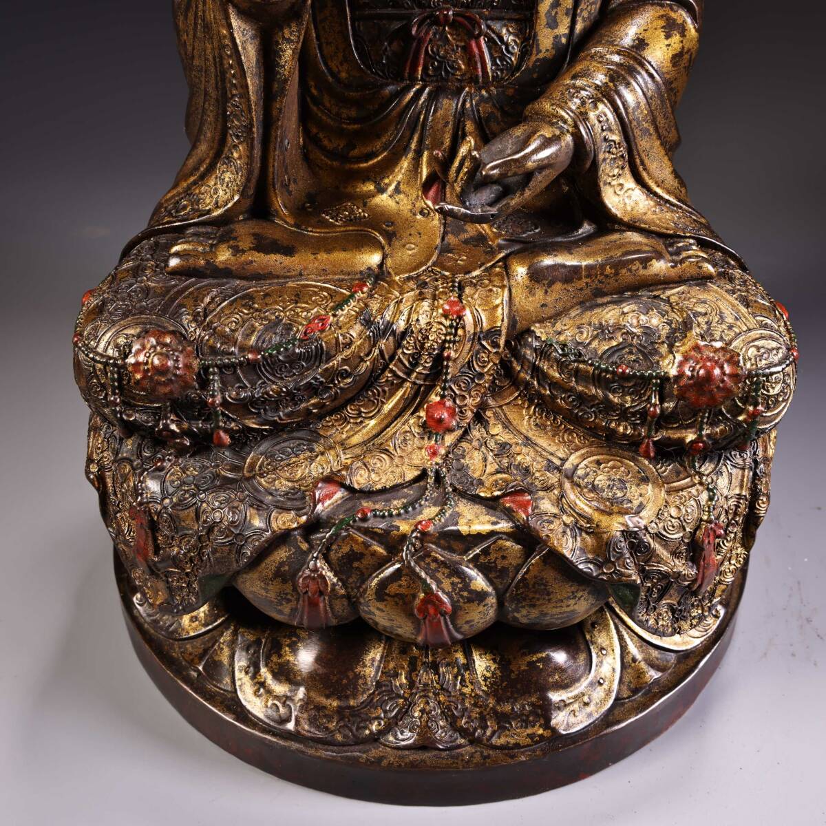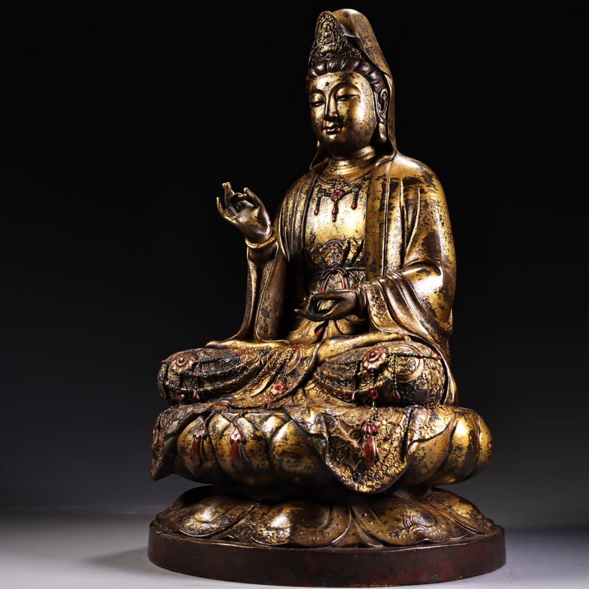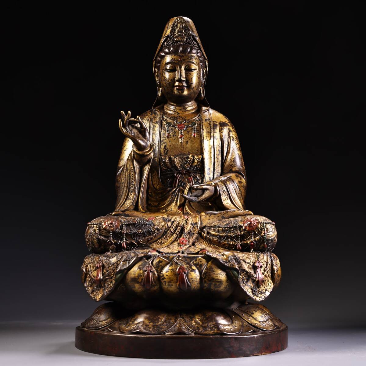 唐物 清 乾隆年製 純銅 全銅 泥金観音菩薩 仏像 奉納されていた 供養品 銅製品 銅器 極細工 古美術品 時代物 中国古玩 骨董品 D68