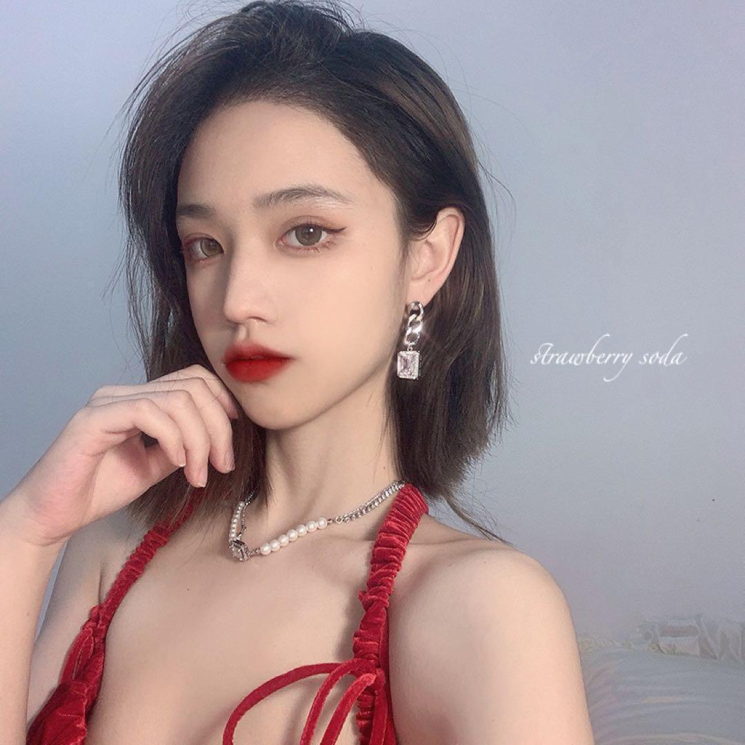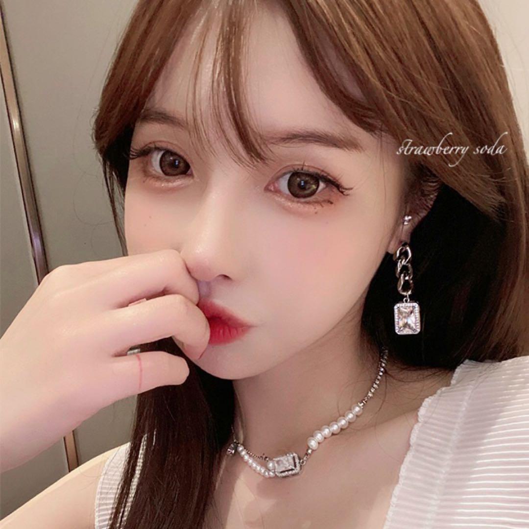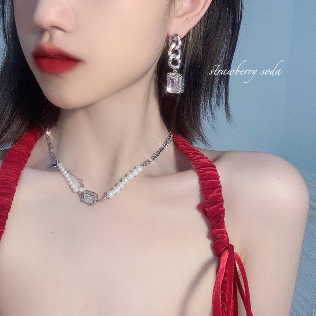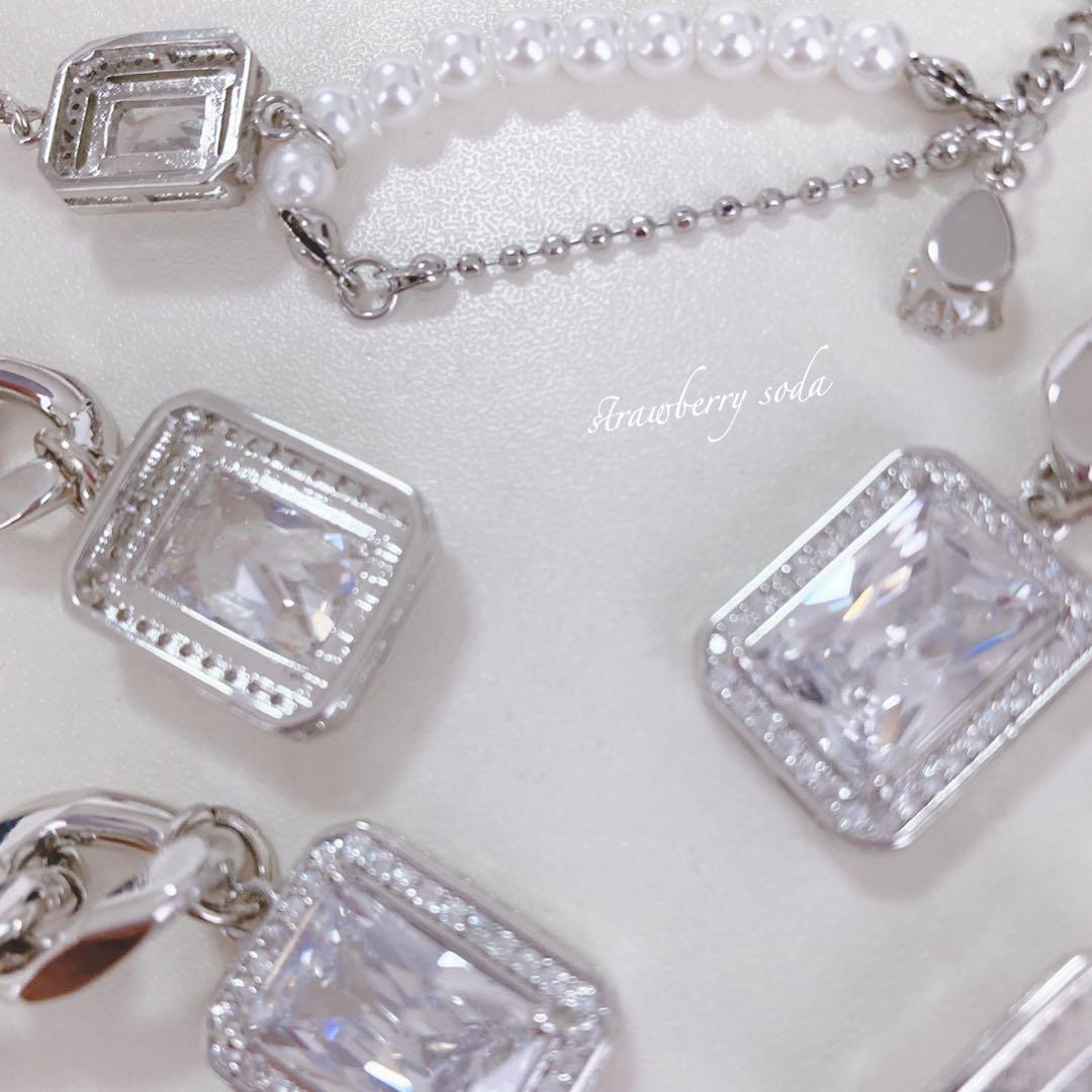 シルバー チェーン ラインストーン スクエアビジュー イヤリング サブカル 地雷 コスプレ コンカフェ 病みかわいい ゴスロリ 量産型 Y2K