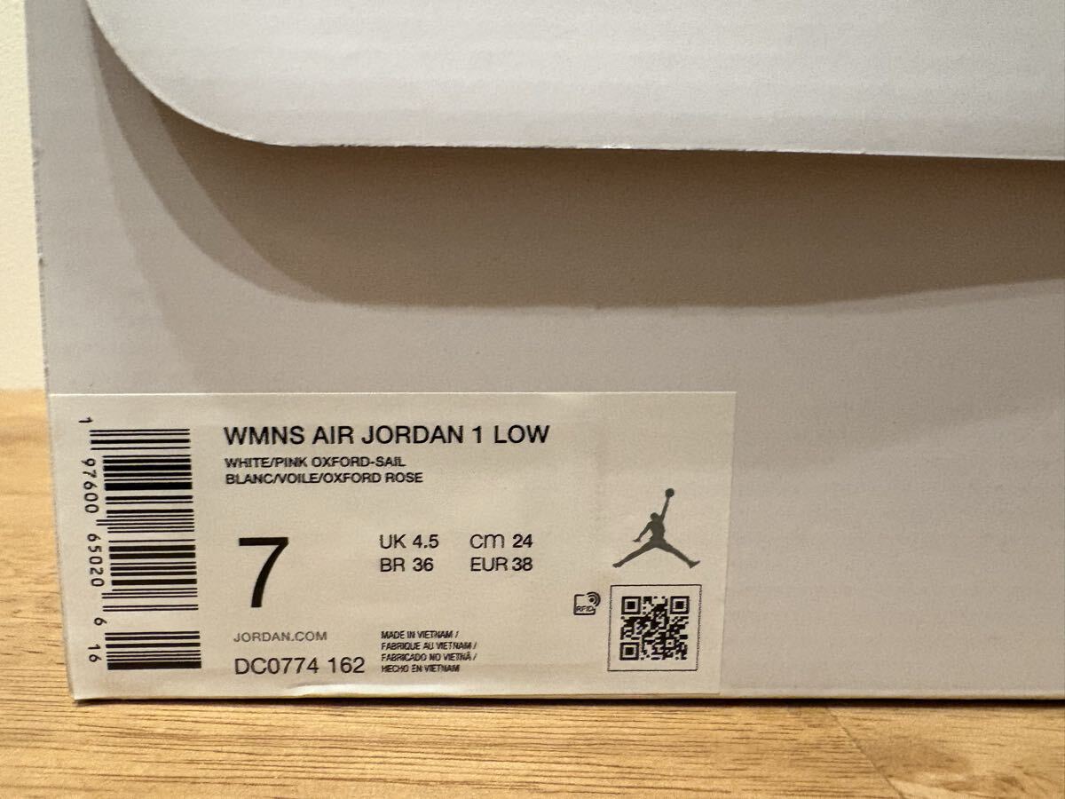 NIKE WMNS AIR JORDAN 1 LOW ナイキ ウィメンズ エア ジョーダン 1 ロー レディース WHITE/PINK OXFORD/SAIL ピンク DC0774-162 モデルになります。