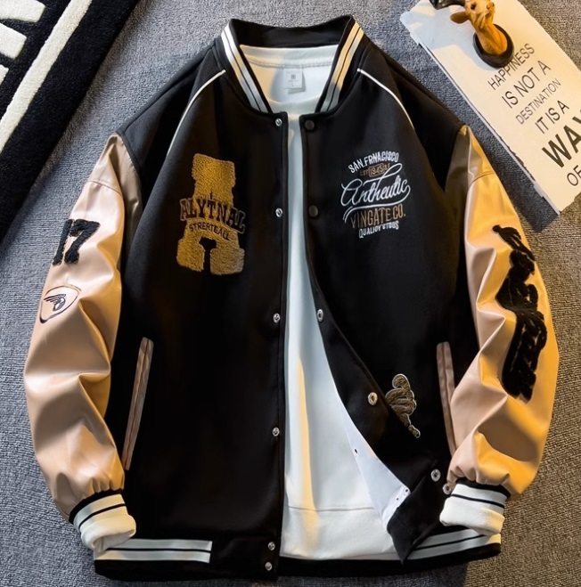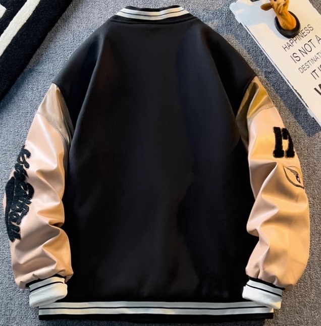 新入荷 春秋 スタジャン 刺繍 メンズ ブルゾン フライトジャケット 野球服 男女アウター PU袖 アメカジ 黒/XL