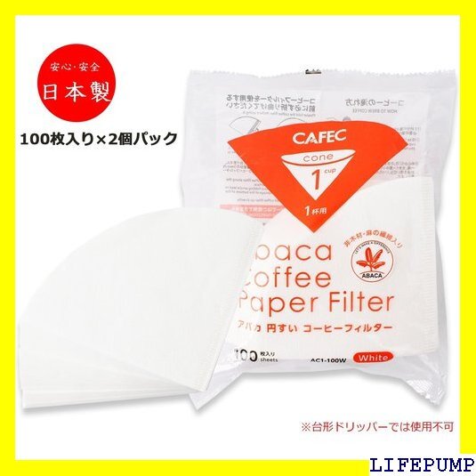 三洋産業 コーヒー フィルター アバカ 円錐形 1杯用 100枚入 2個パック 白 計200枚 AC1-100W 764