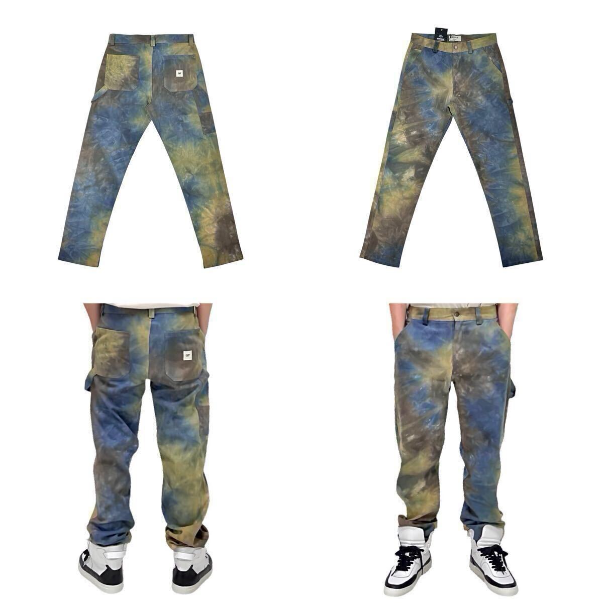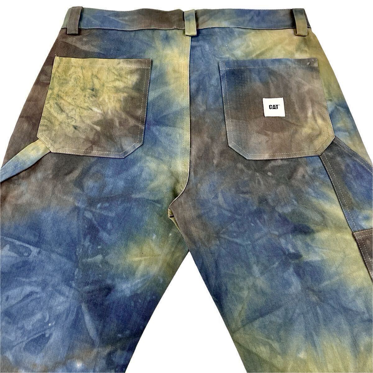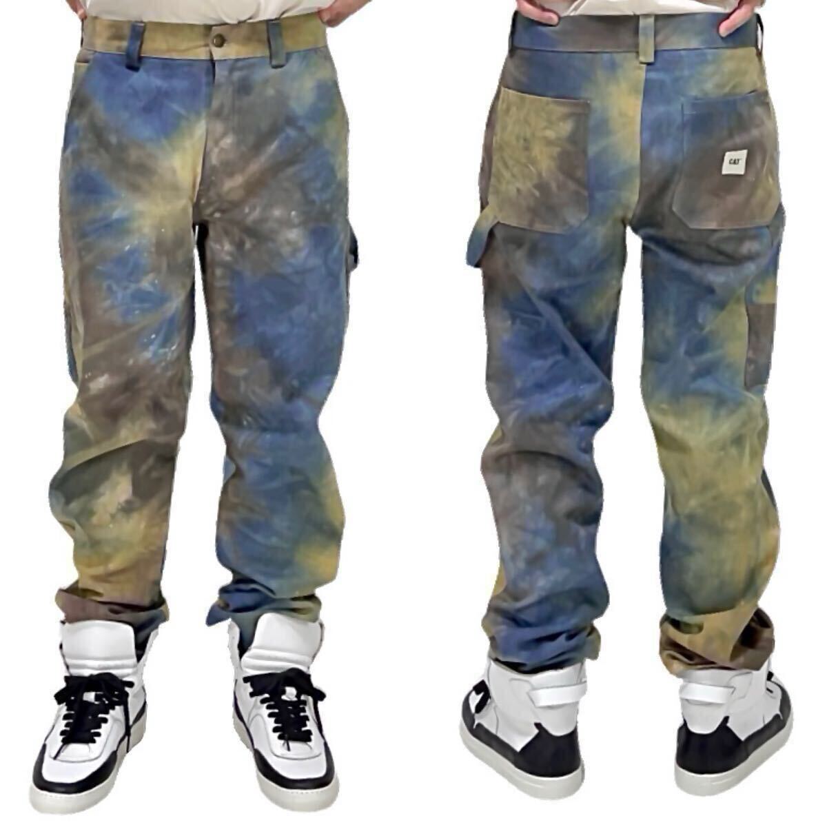 ワークウエアの定番、ペインターパンツに大胆にタイダイ染めを施したカッコいいデザイン。