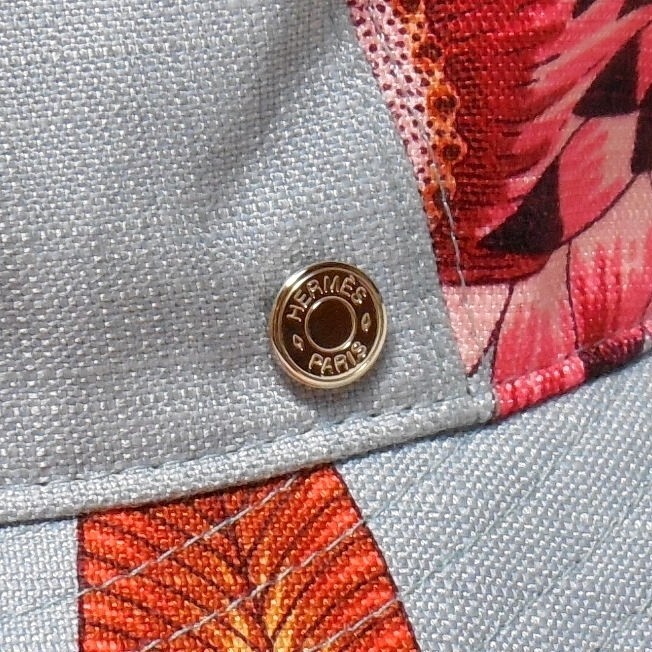 素材、カラー | ナッテ織の表地(麻52%、コットン30%、シルク18%)カラーはGRIS BLETTE(グレーブルー) 裏地はコットン100% 貴金属仕上げの金具(パラジウム、光沢のある銀色)ドライクリーニングオンリー |
