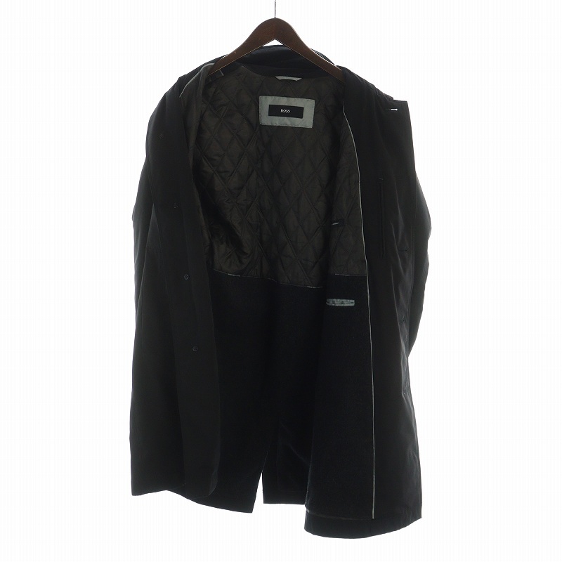 ヒューゴボス HUGO BOSS ステンカラージャケット 長袖 シングル 総裏地 裏地キルティング ロゴ 48 M 黒 ブラック ■GY18 /MQ メンズ