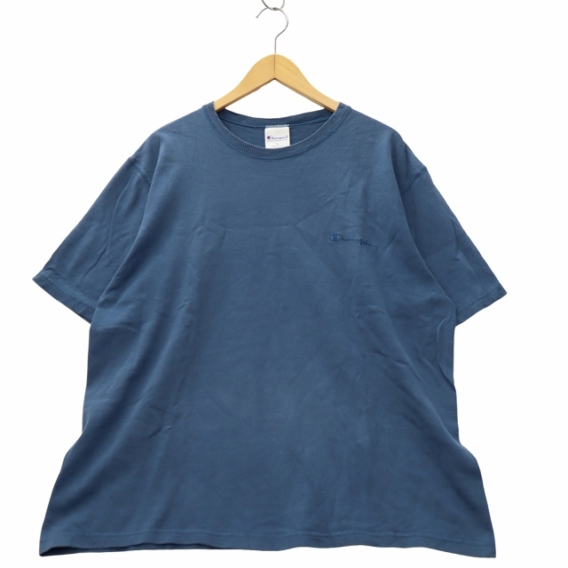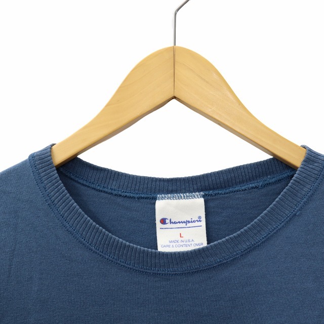 チャンピオン CHAMPION USA製 クルーネック 半袖 ロゴ刺繍 コットン Tシャツ L BLUE ブルー メンズ