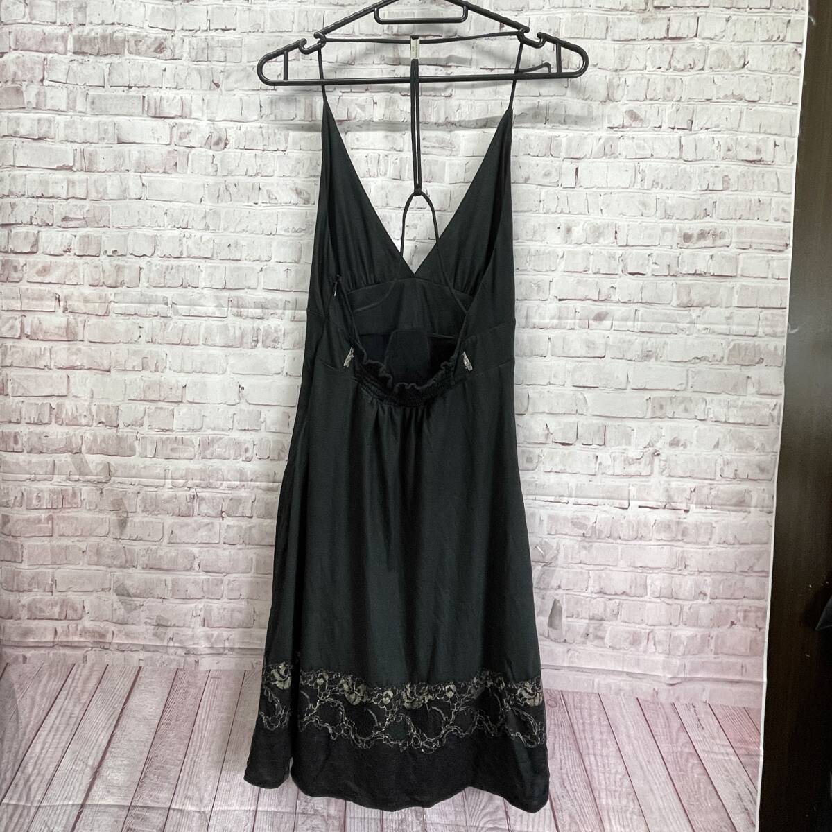 キャミソール ひざ丈 ワンピース フレア レース 花柄 フラワー ブラック系 サイドファスナー ウエストゴム ストレッチ