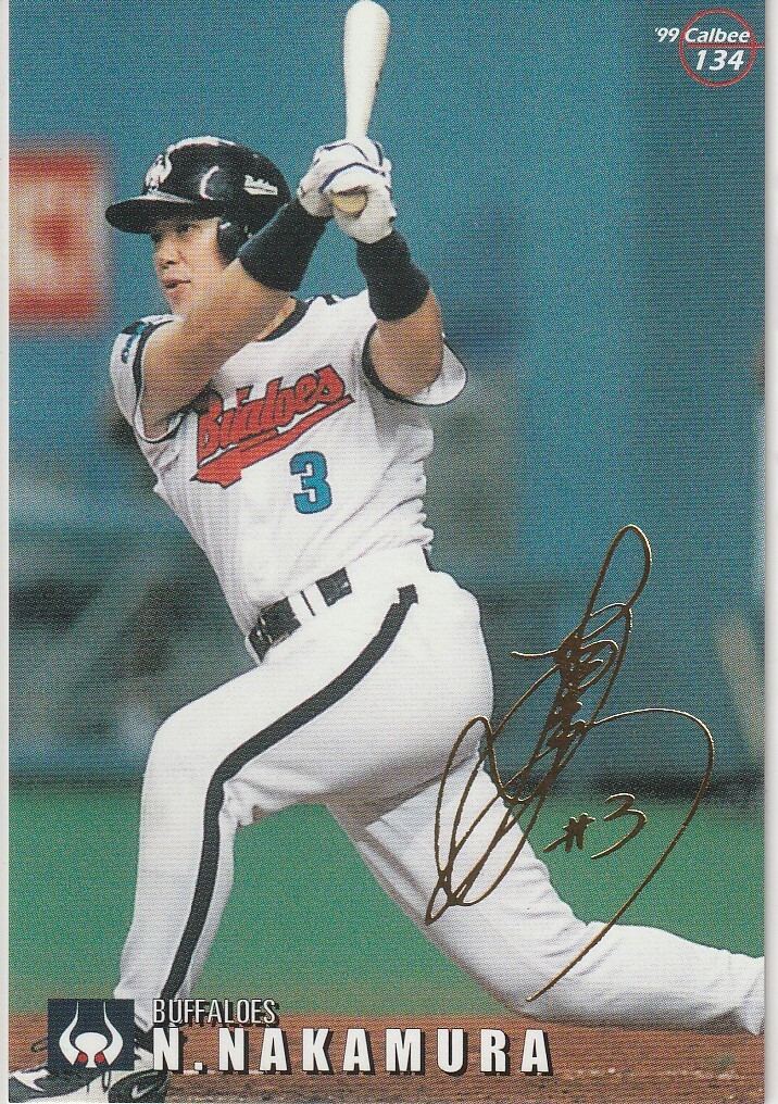 ●1999カルビー【中村 紀洋】プレ版:金箔押サインパラレル No.134,246:近鉄