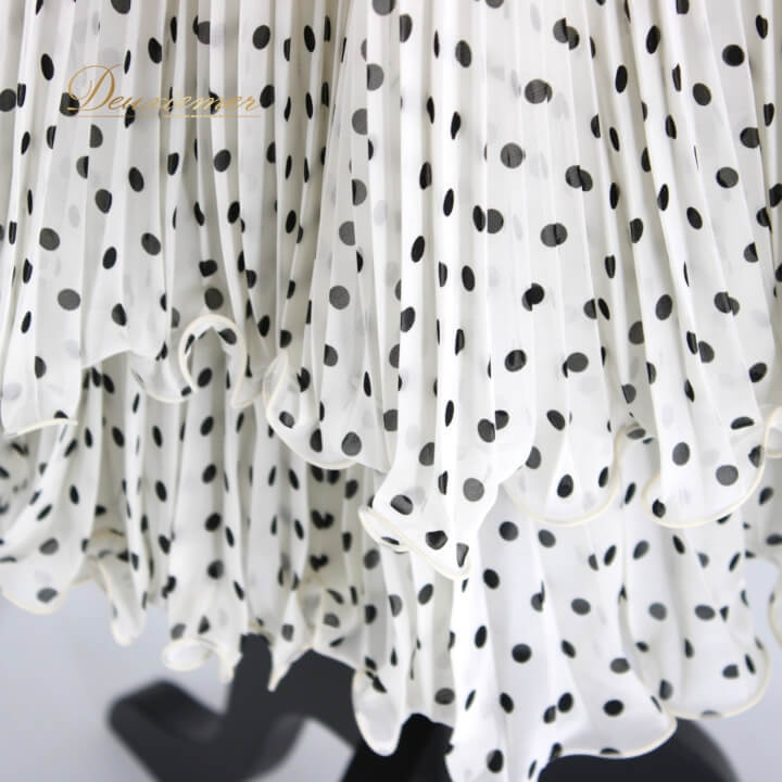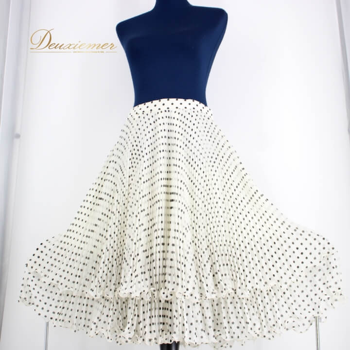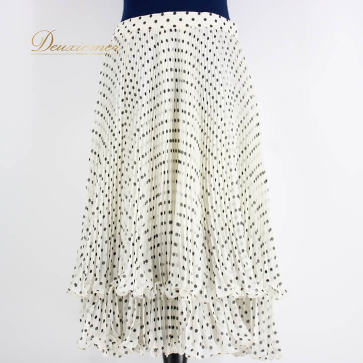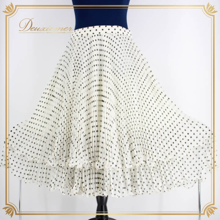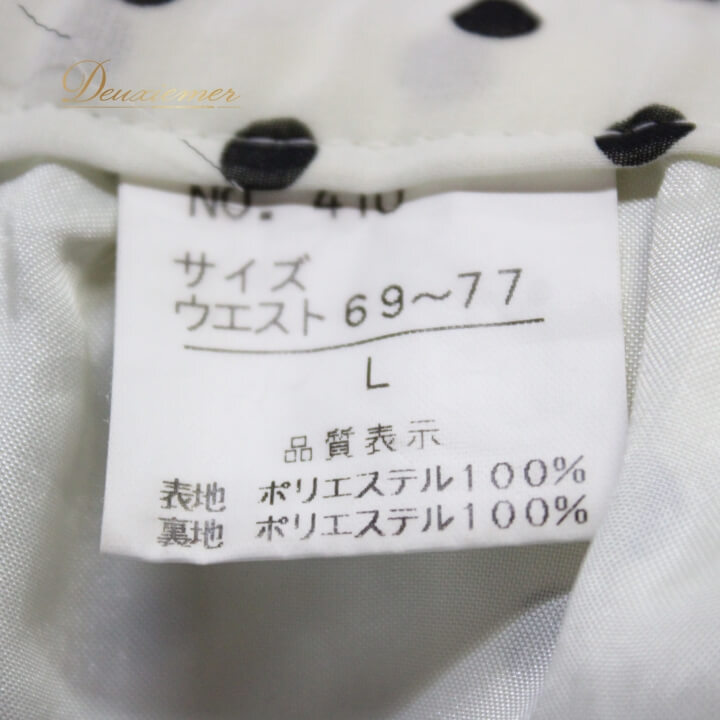 【商品名】社交ダンス衣装 スカート 【サイズ】Lサイズ 平置き実測:総丈約66cm、ウエスト約38cm~ ※実測の為、多少の誤差はご容赦願います 【仕様】 ・ファスナー仕様 ・若干程度の伸縮性有り ------------------------------------ 【ポイント】 ▽信頼の日本製 ▽ブラック×ホワイト ▽レトロかわいいドット柄 ▽大きく広がる二重スカート ------------------------------------ 【撮影時使用トルソー】 種 類:女性用トルソー9号 (一般的に使用されるサイズです) サイズ:肩幅約37cm、バスト約88cm、ウエスト約66cm、ヒップ約89cm |
