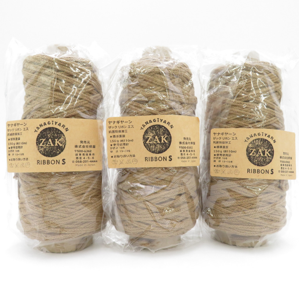 | 毛糸 YANAGIYARN ヤナギヤーン ZAK RIBBON S ザックリボンS 3巻セット 8番色 カーキブラウン 1巻約150g 雑貨向き 日本製 未使用品 |