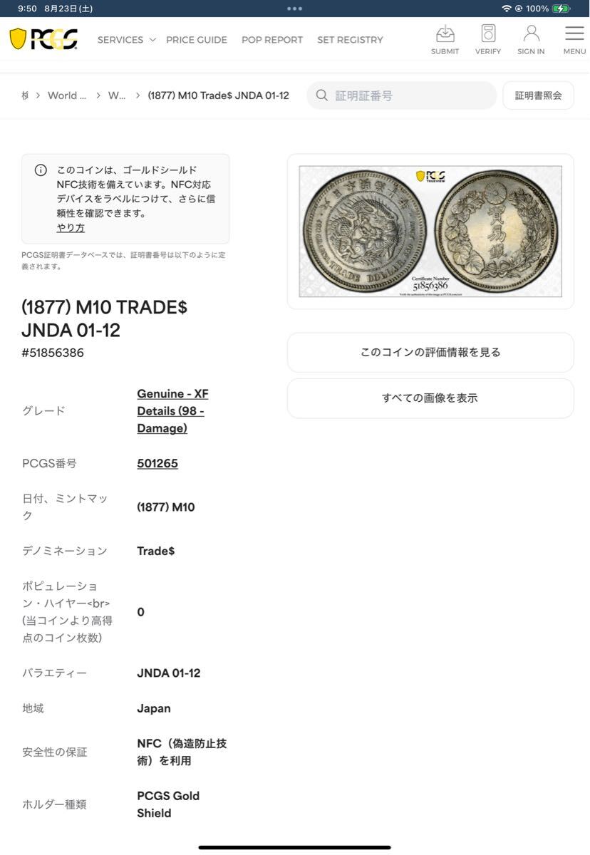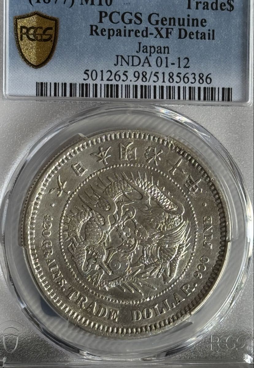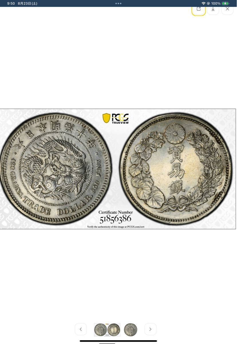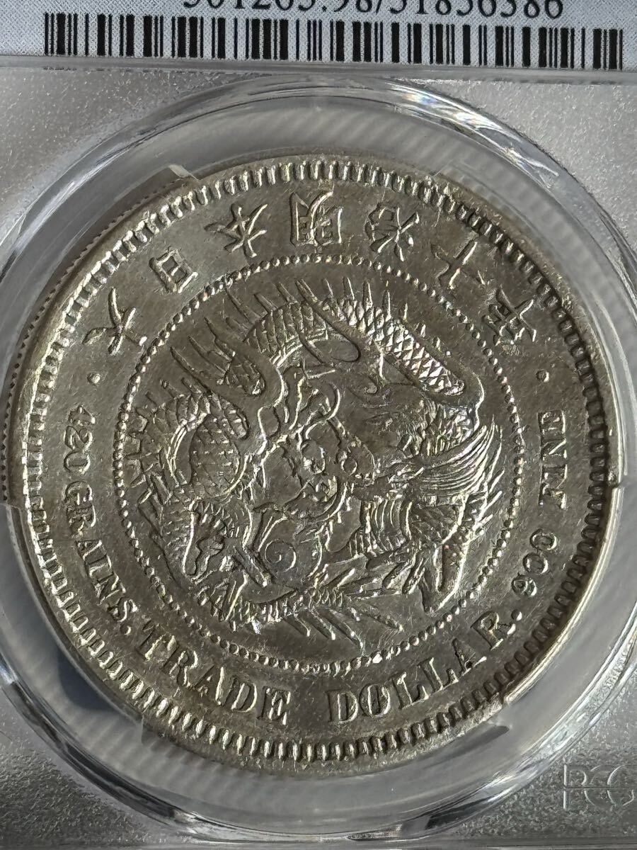 【非常に美しい貿易銀・鑑定済・希少銀貨】明治10年(1877年) 貿易銀 Trade Dollar PCGS