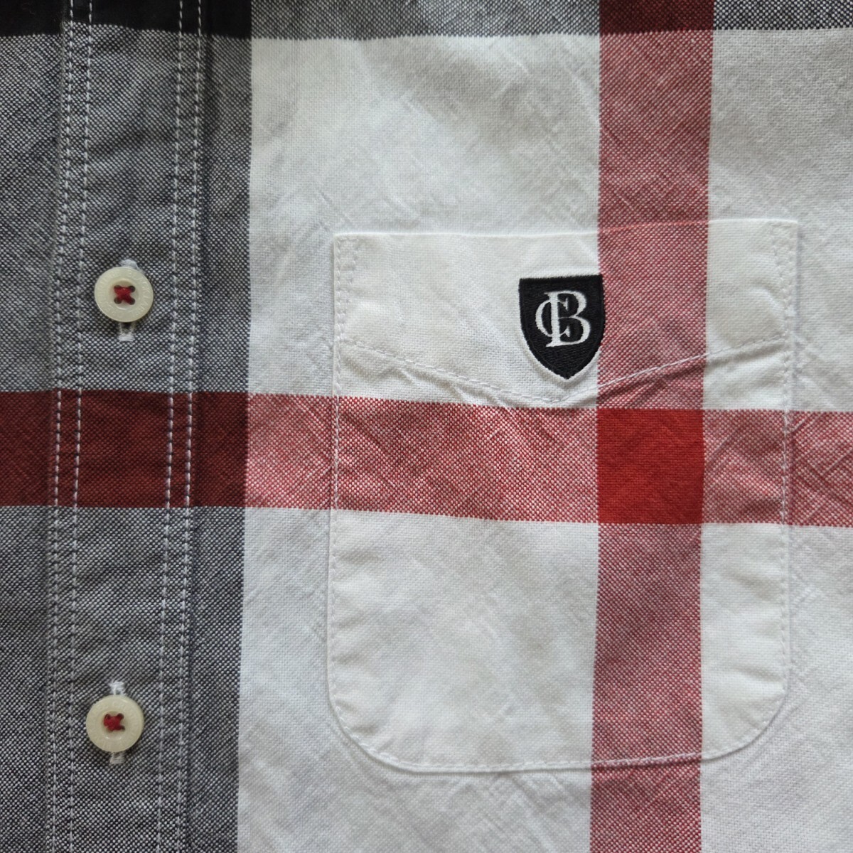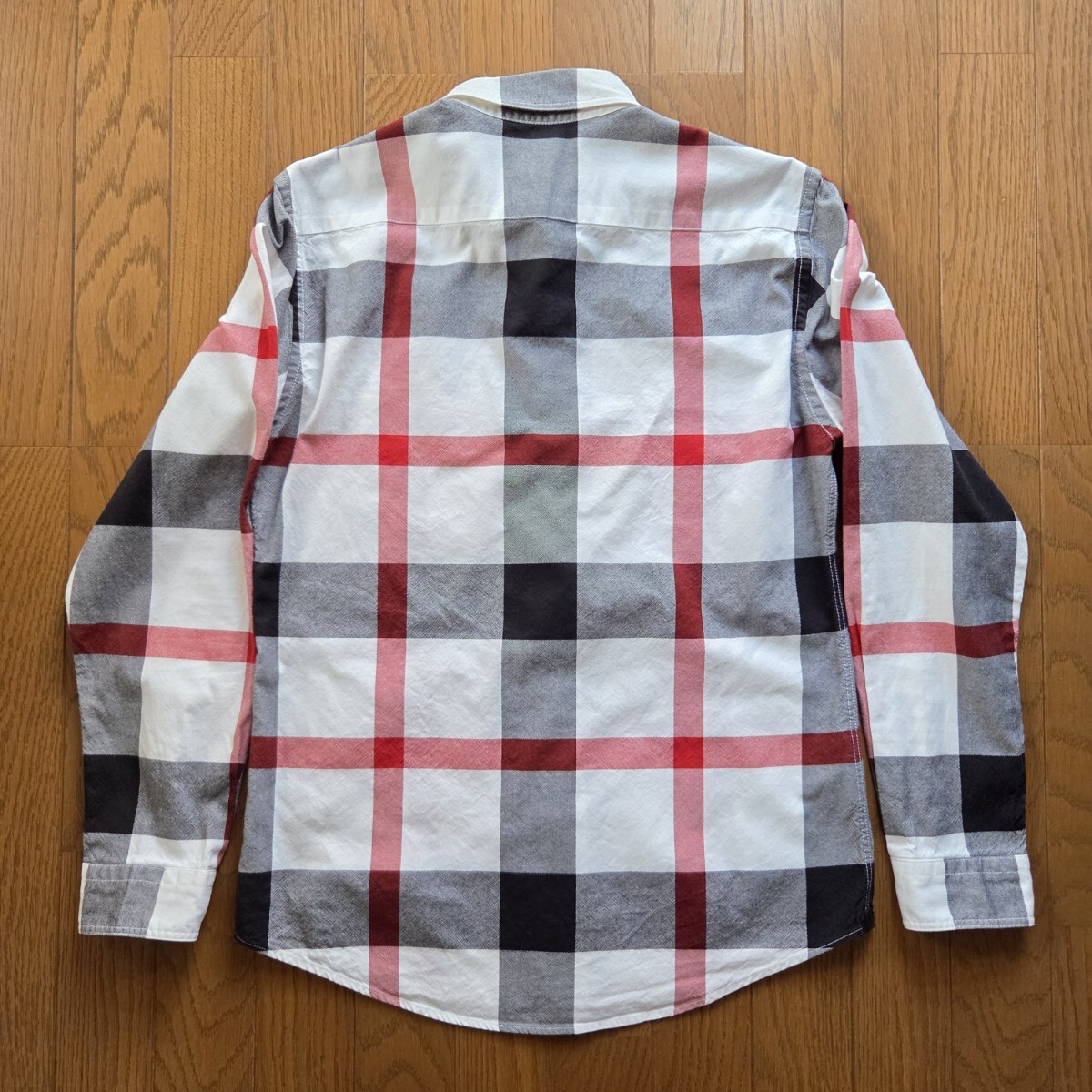 ブラックレーベルクレストブリッジの、ホワイト×レッド×ブラックの長袖チェックシャツです。