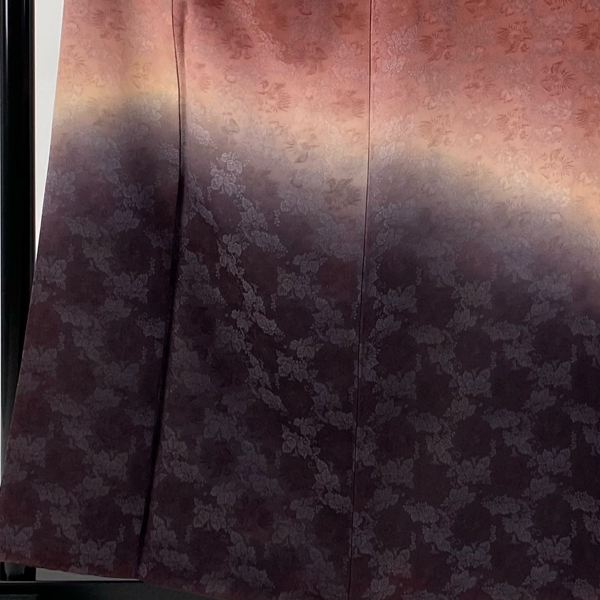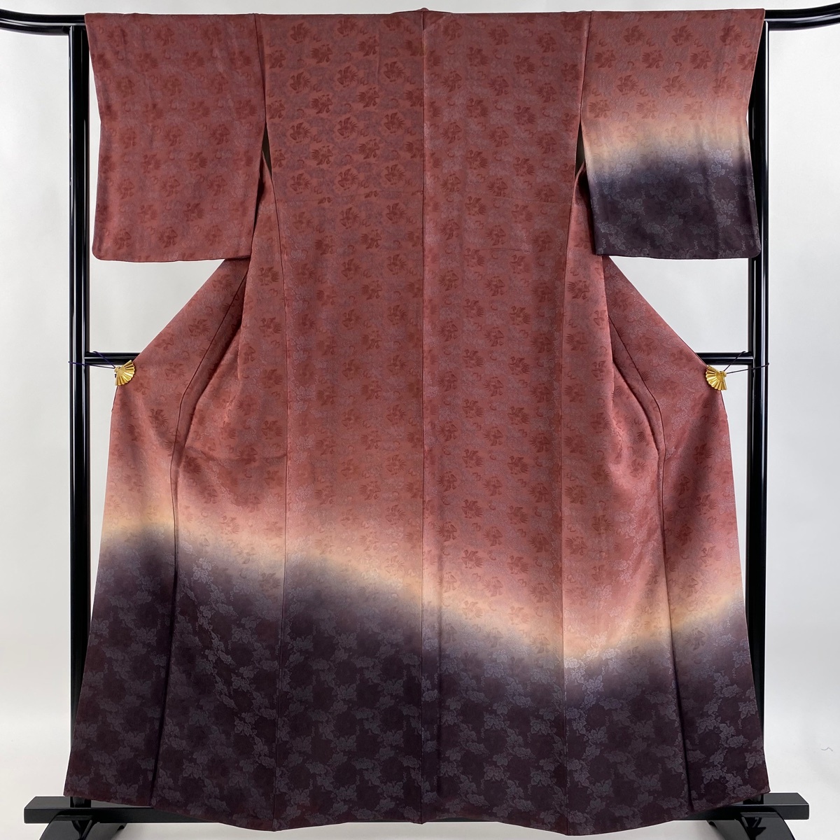 | 付下げ 秀品 鳳凰 桐 ぼかし 染め分け 茜色 袷 身丈158.5 裄丈63.5 S 正絹 【中古】 |