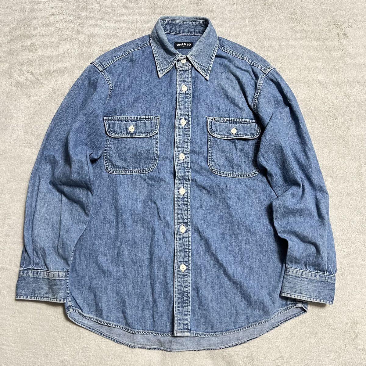 ★名作★OLD UNIQLO オールド ユニクロ 長袖 デニムシャツ サイズS メンズ 通年 ビンテージ ヴィンテージ R-7983