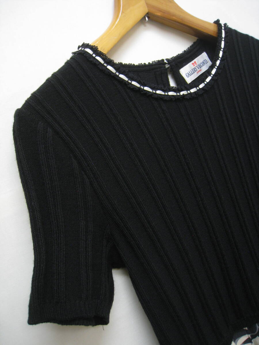 ★GALLERY VISCONTI◆ギャラリービスコンティ 半袖 ニット 花柄スカート ドッキングワンピース レディース サイズ2 日本製★ | ||||