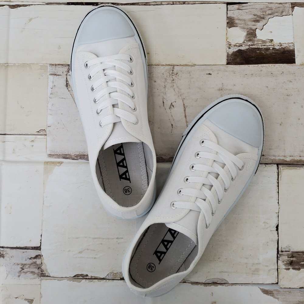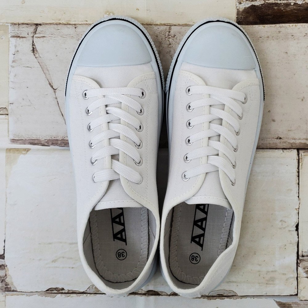 【AAA+ サンエープラス】のキャンバススニーカー。 シンプルデザインだから通年履けて様々なコーデにもマッチするアイテム! カジュアルだけでなくストリートやスポーティなコーディネートにもピッタリな毎日気兼ねなく履ける一足です。 |