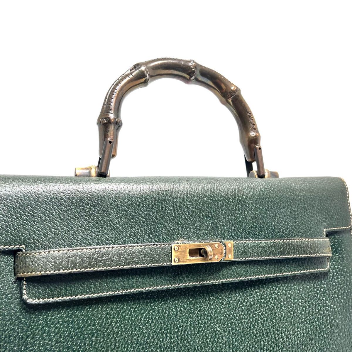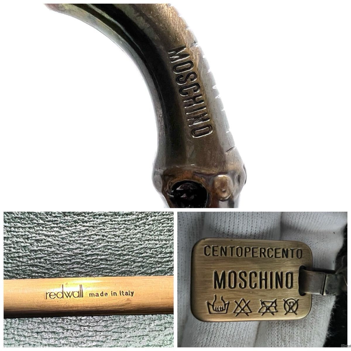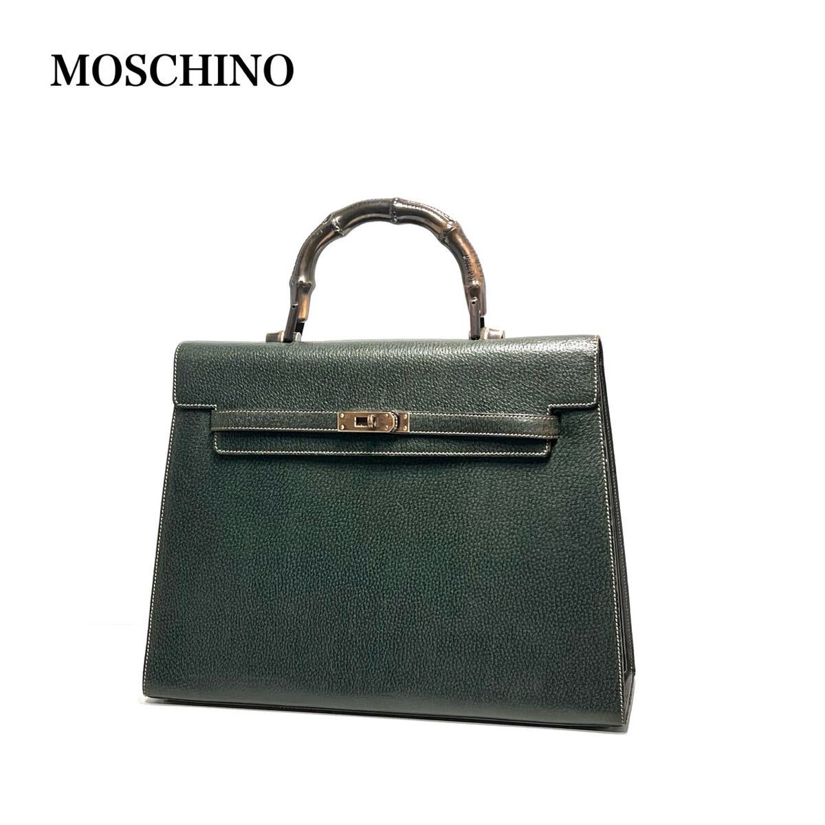 MOSCHINOモスキーノRedwall/italy製/バンブー型メタルハンドル /ベルトデザイン/グリーン系色/ハンドバッグ