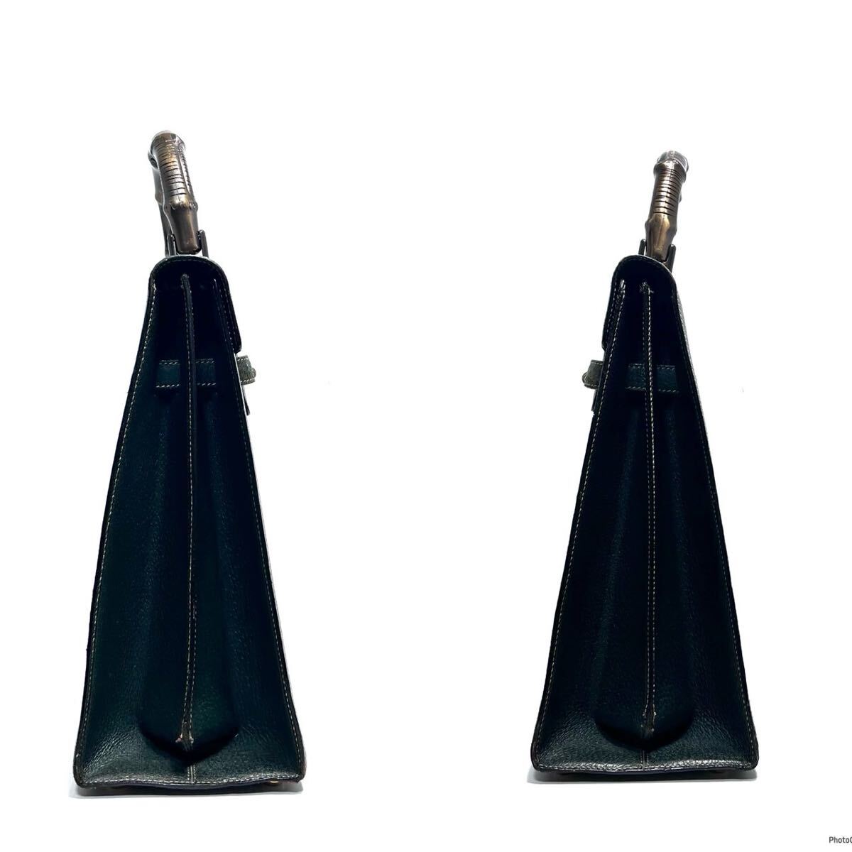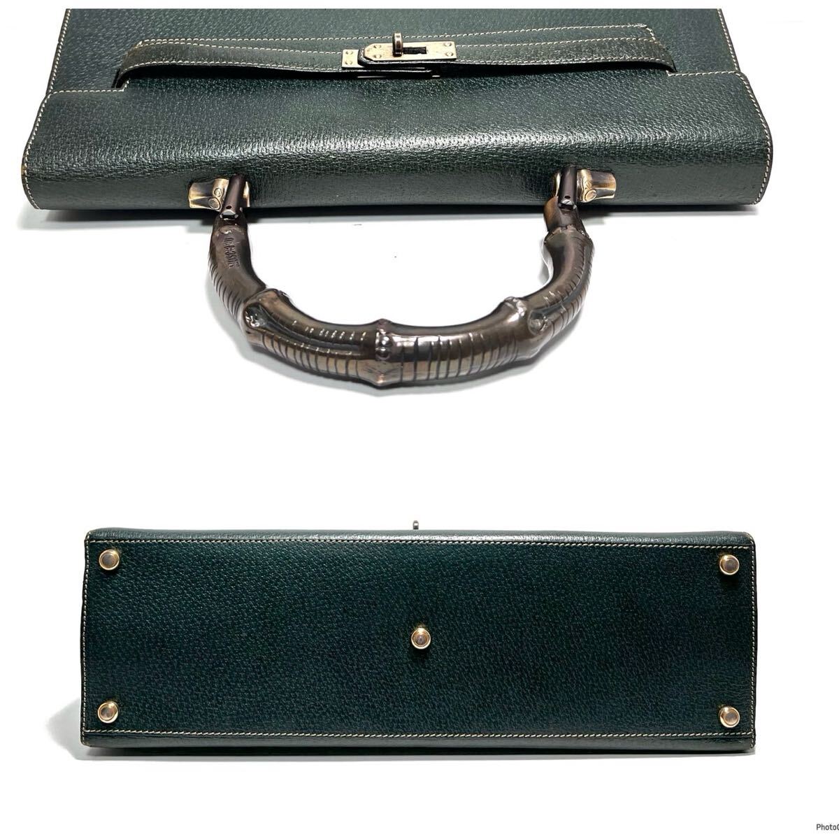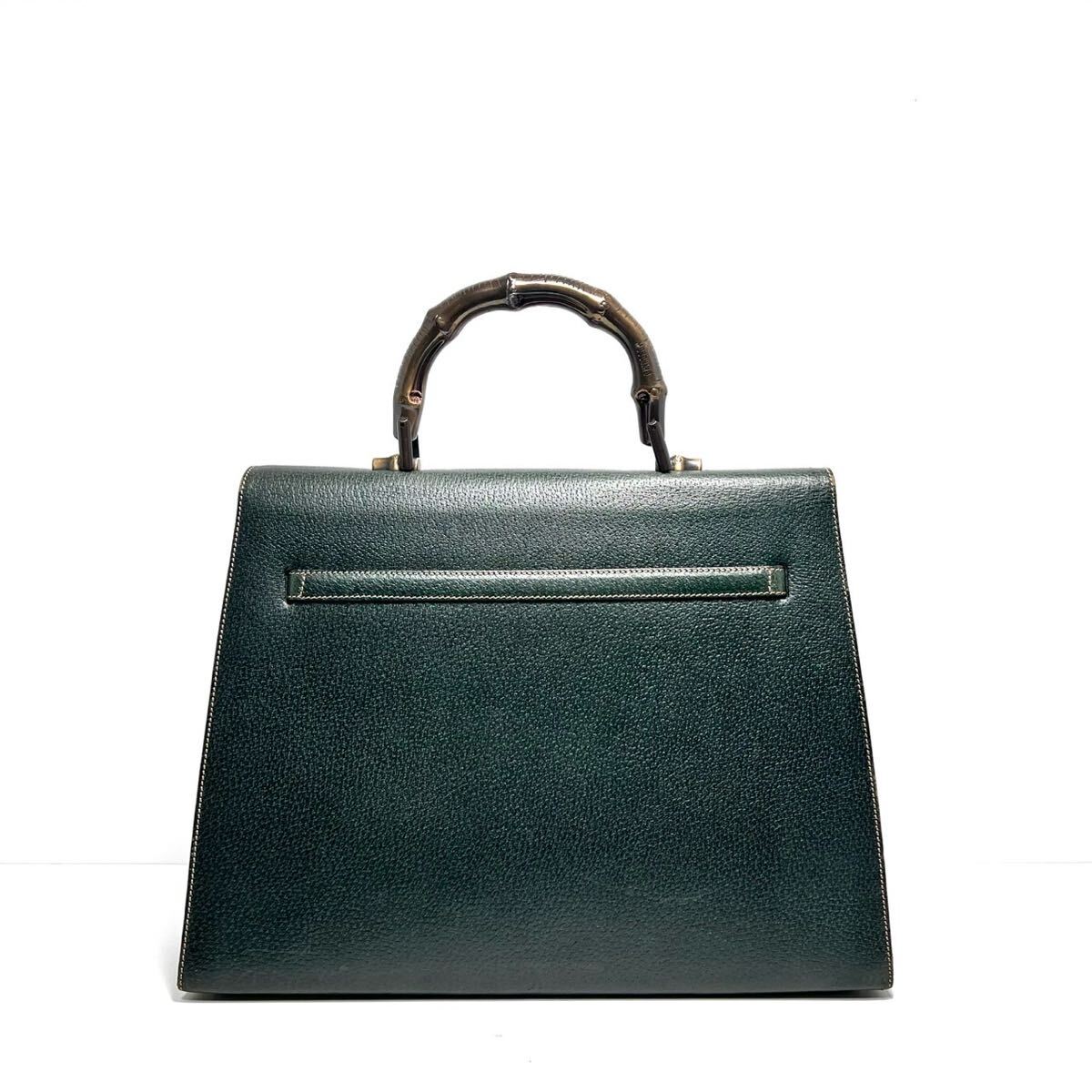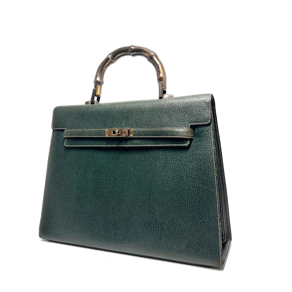 MOSCHINOモスキーノRedwall/italy製/バンブー型メタルハンドル /ベルトデザイン/グリーン系色/ハンドバッグ