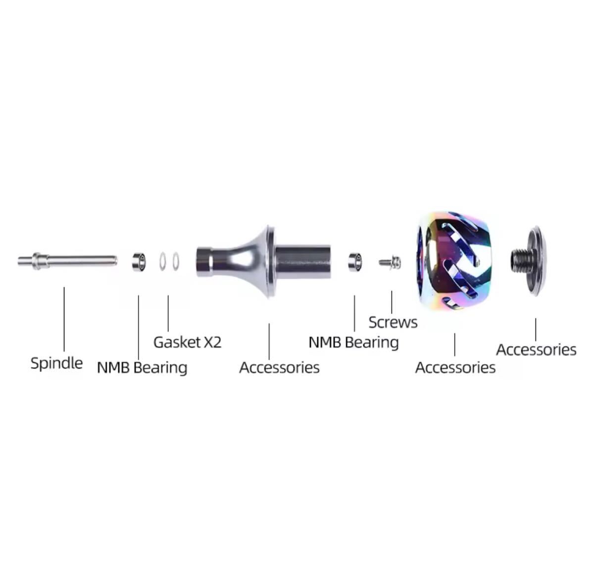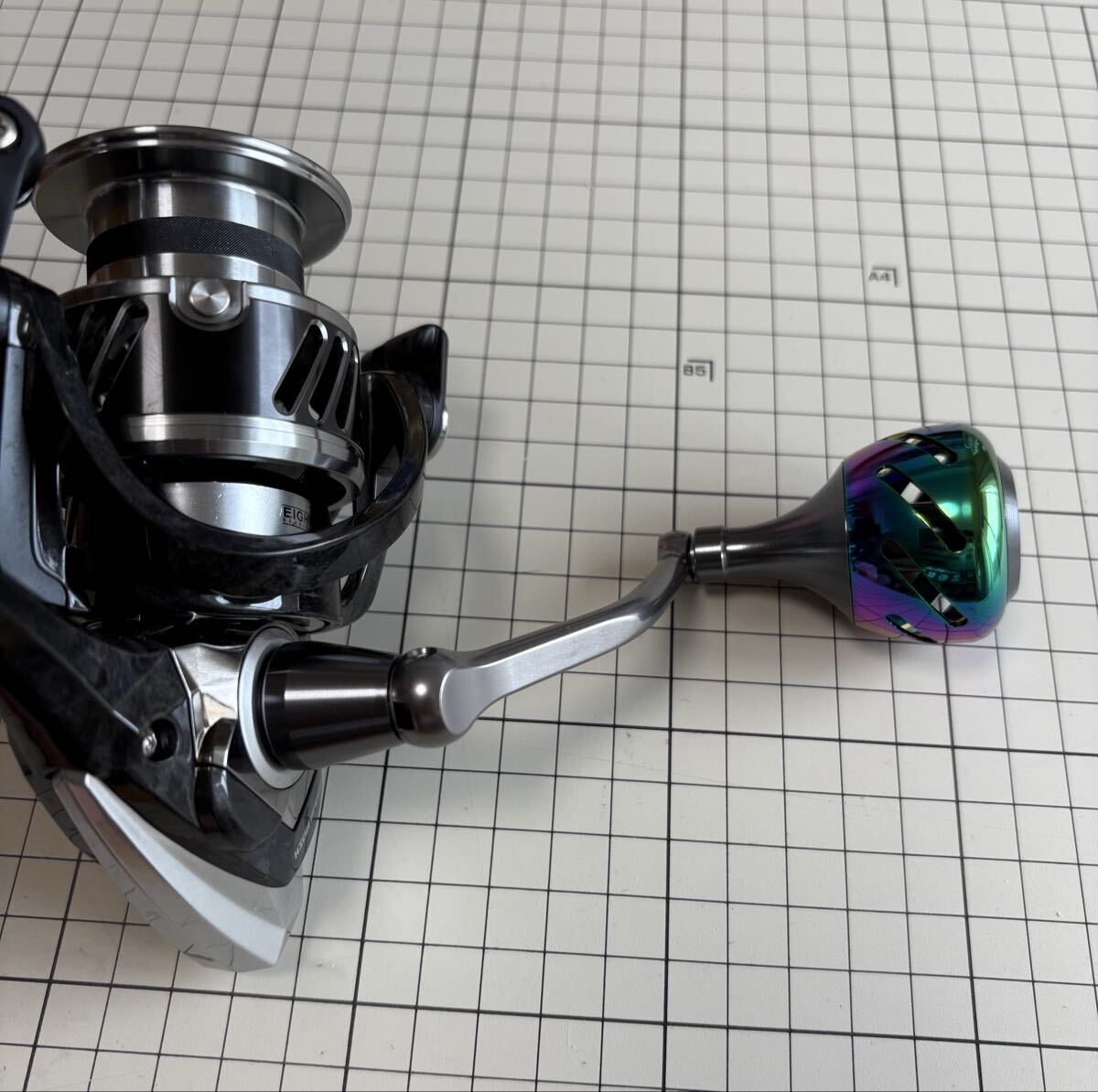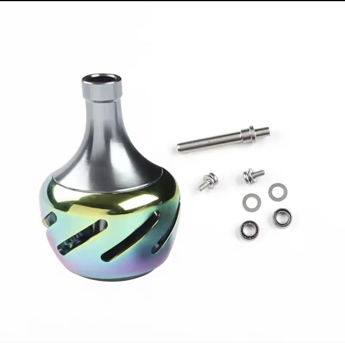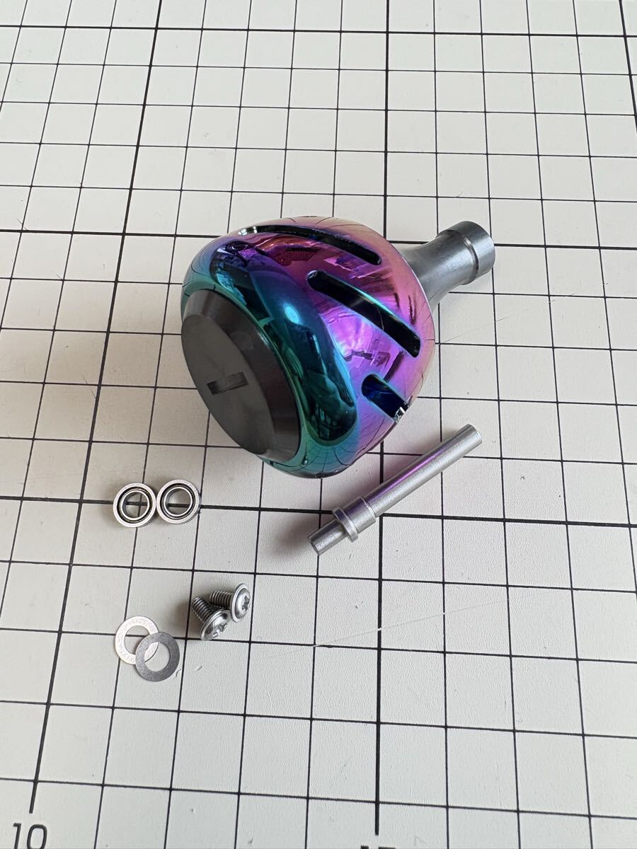 リールのパワーハンドルノブ、ラウンド型のレインボーカラーです。