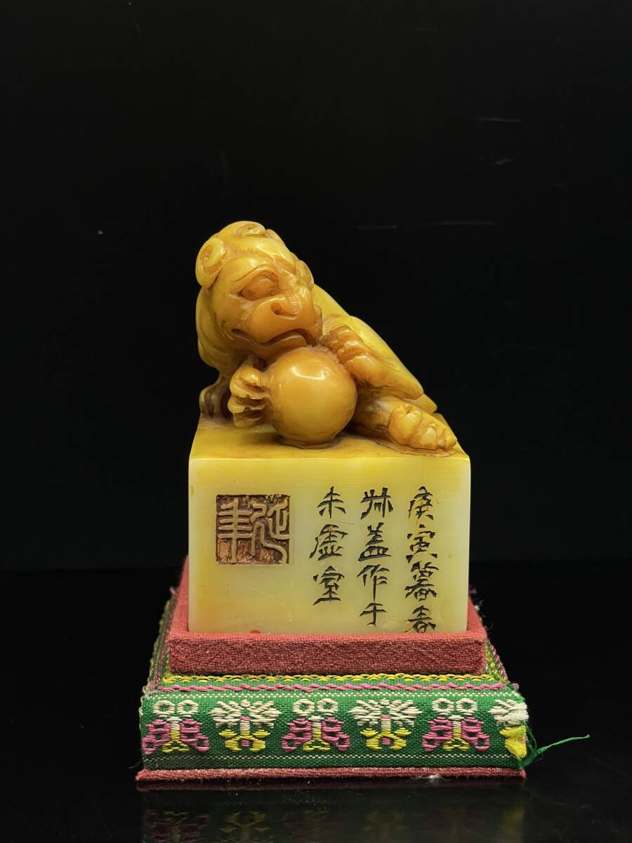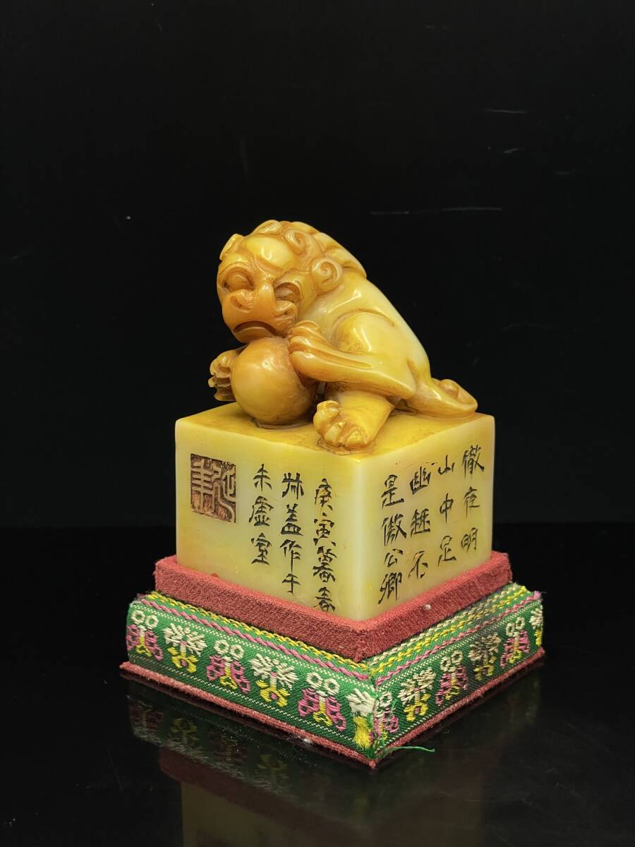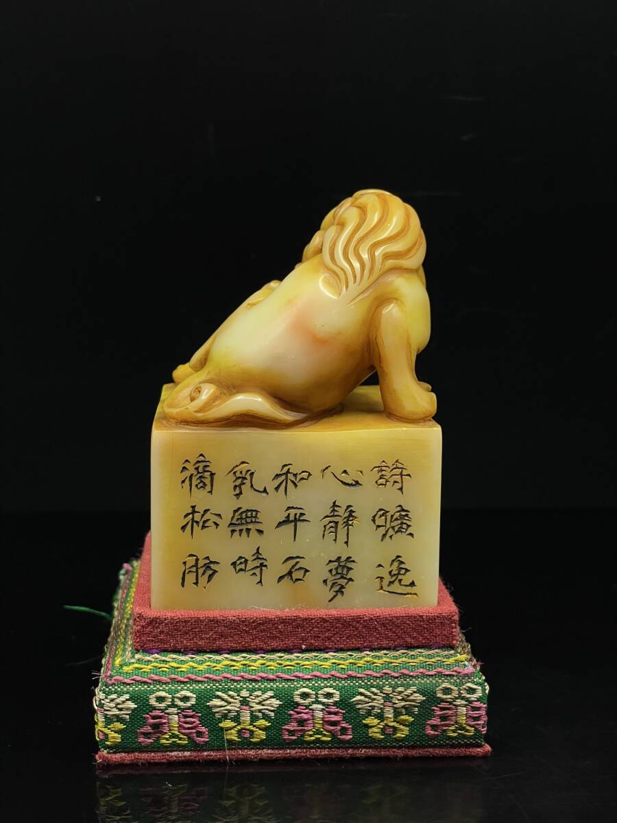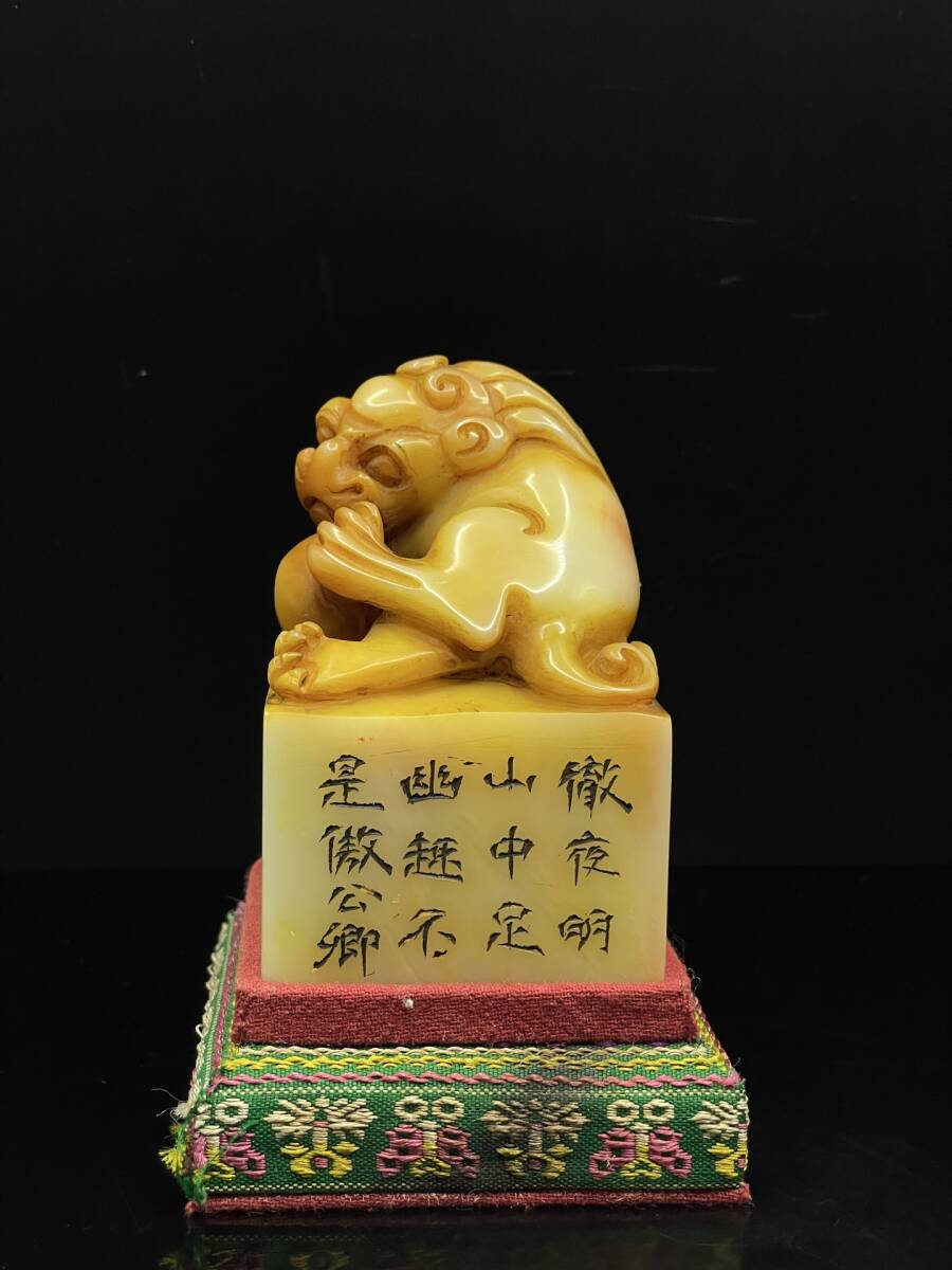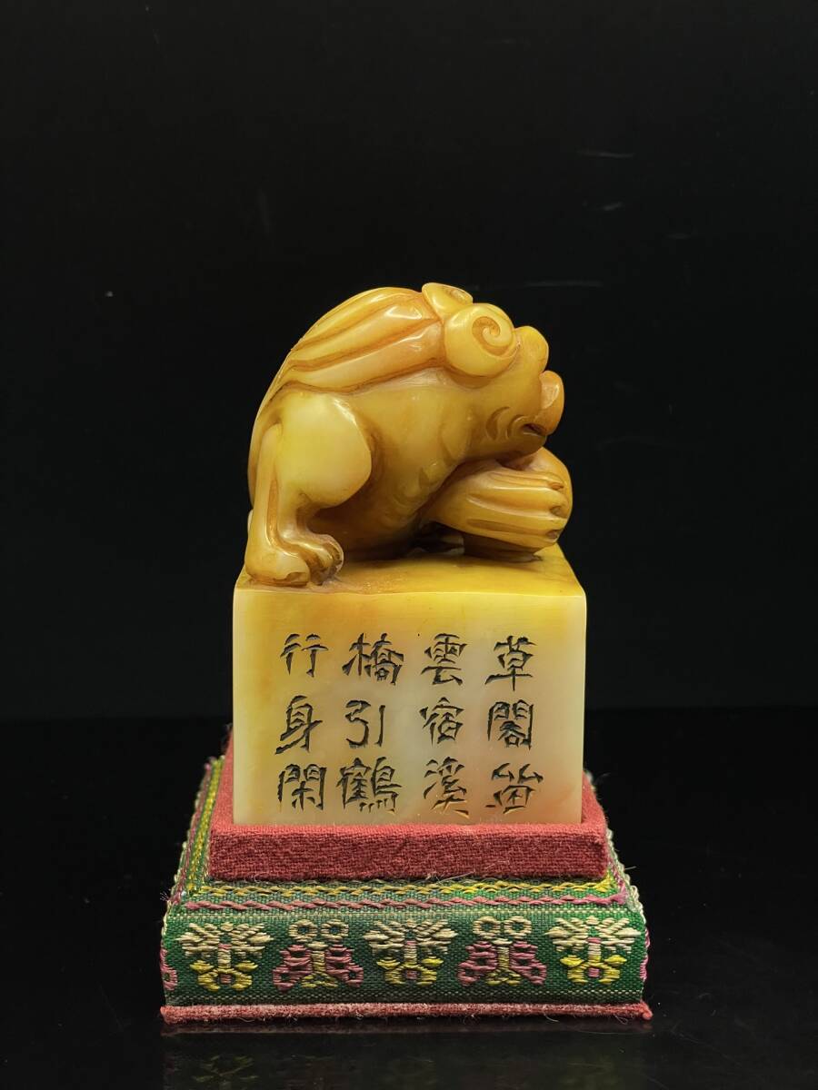 清時代 古寿山石 田黄石彫 詩賦 獣 印章 印鑑 文案置物 置物擺件 時代物 古董品 骨董 旧家藏出 唐物 中国古玩 古美術