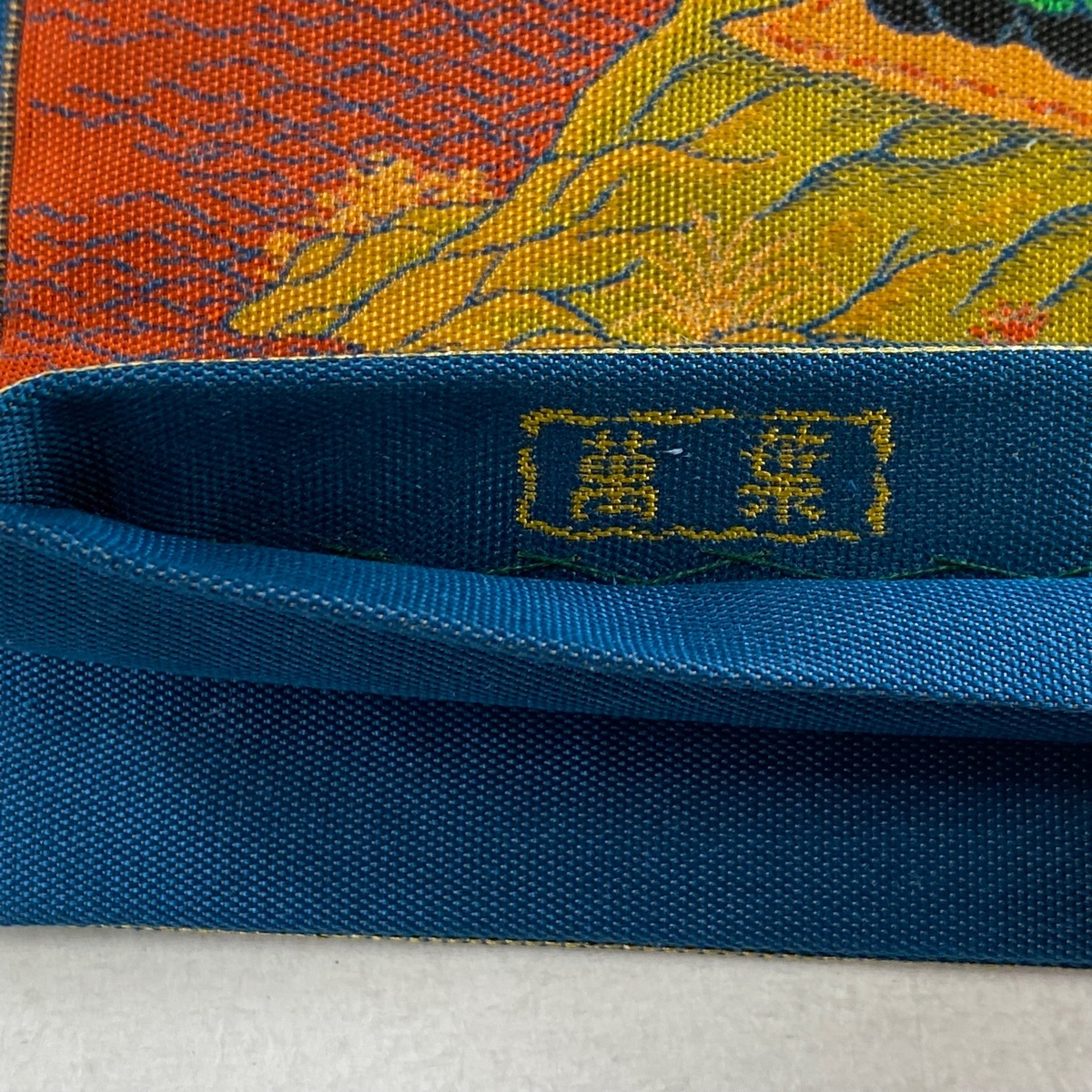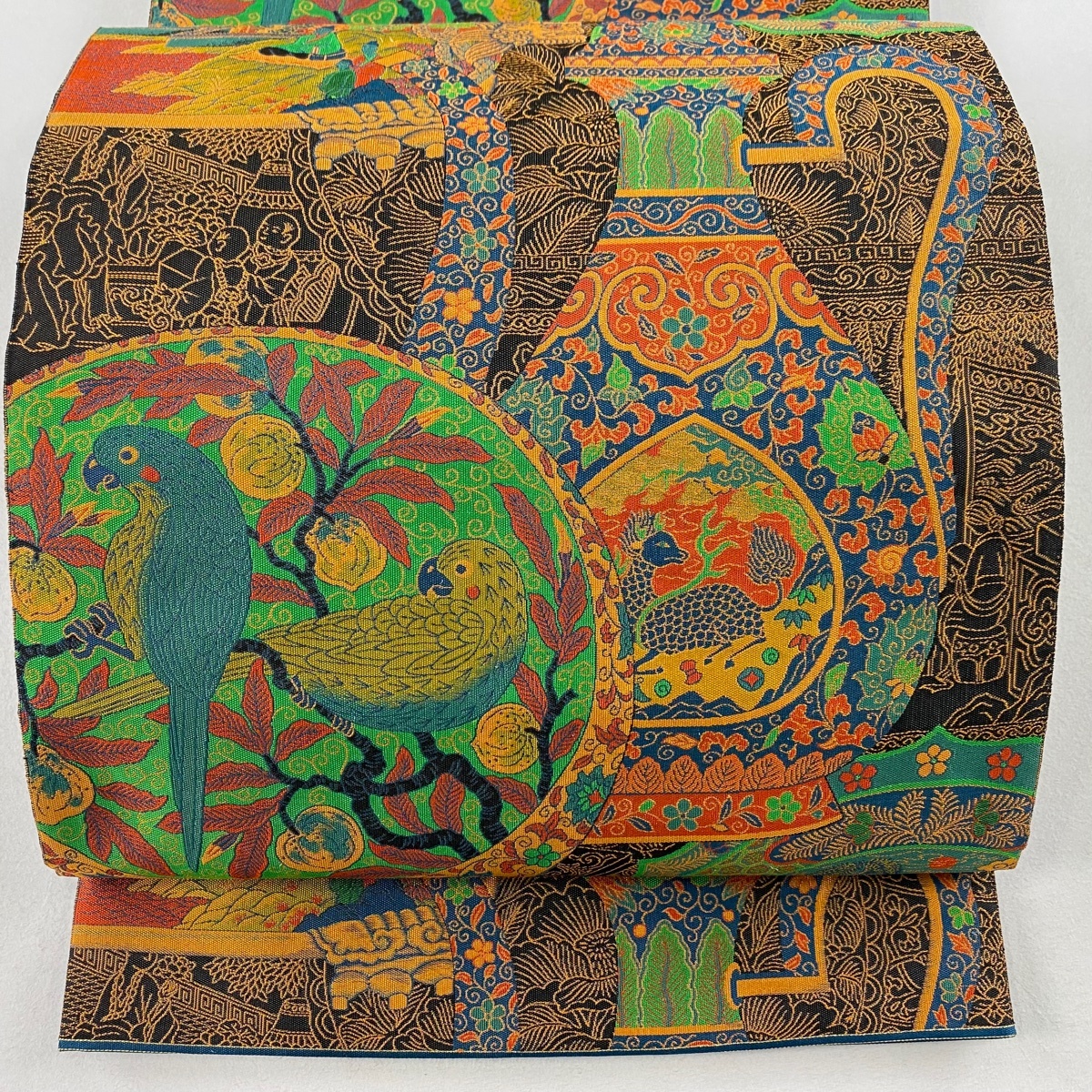 | 袋帯 美品 秀品 落款 萬葉 関西仕立て 器物 鳥 オレンジ 全通 正絹 【中古】 |