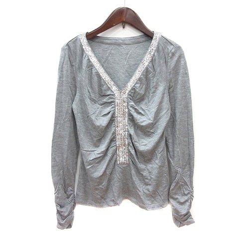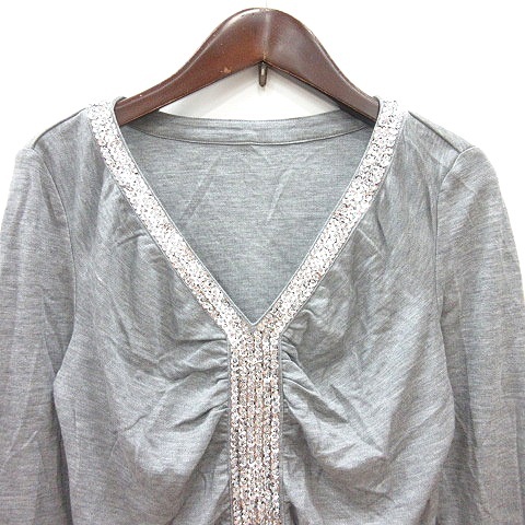 ピンキー&ダイアン ピンダイ PINKY&DIANNE カットソー Vネック 長袖 スパンコール 38 M グレー /MN レディース