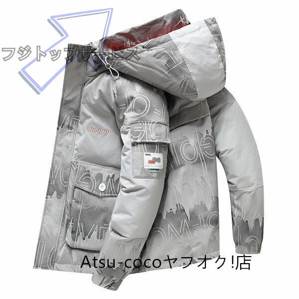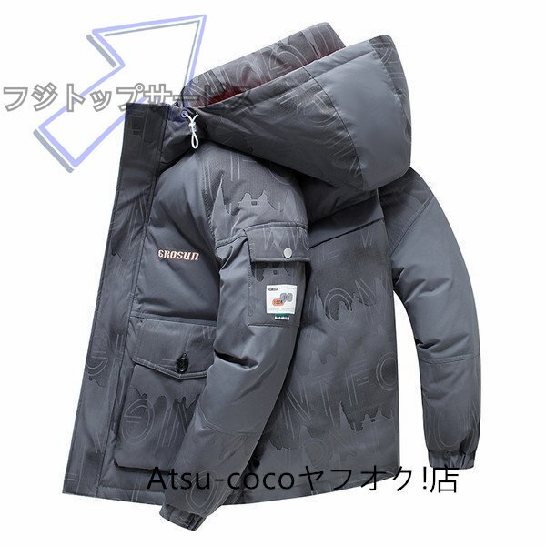 グレー ダウンジャケット メンズ 迷彩柄 ダウン ワーク ストリート 撥水 フード付き 保温 防寒 防風 冬 作業着 おしゃれ あったか