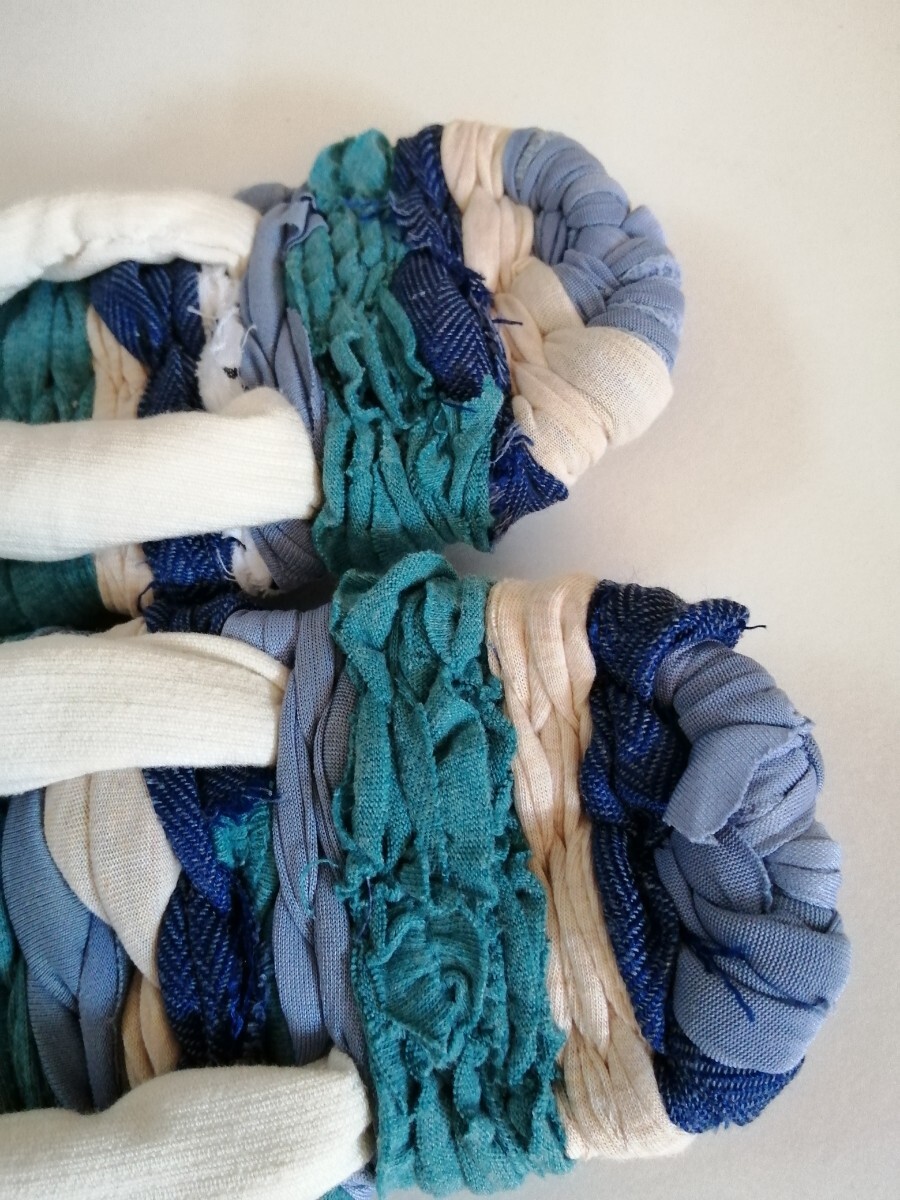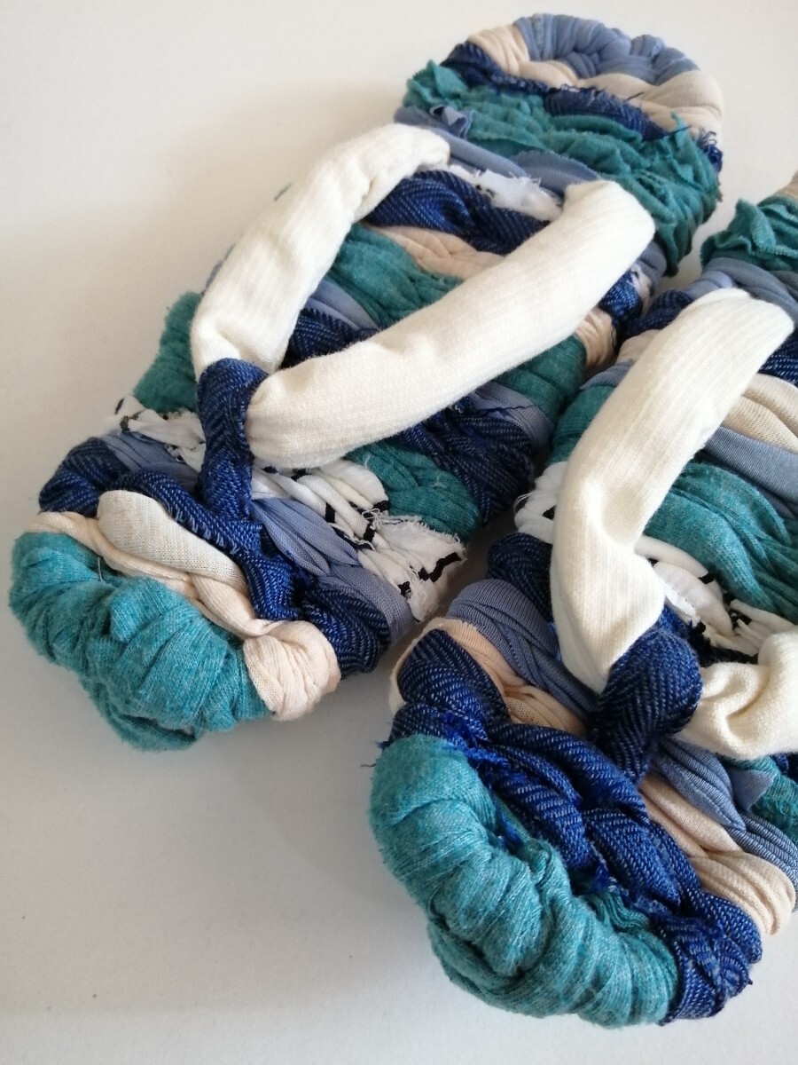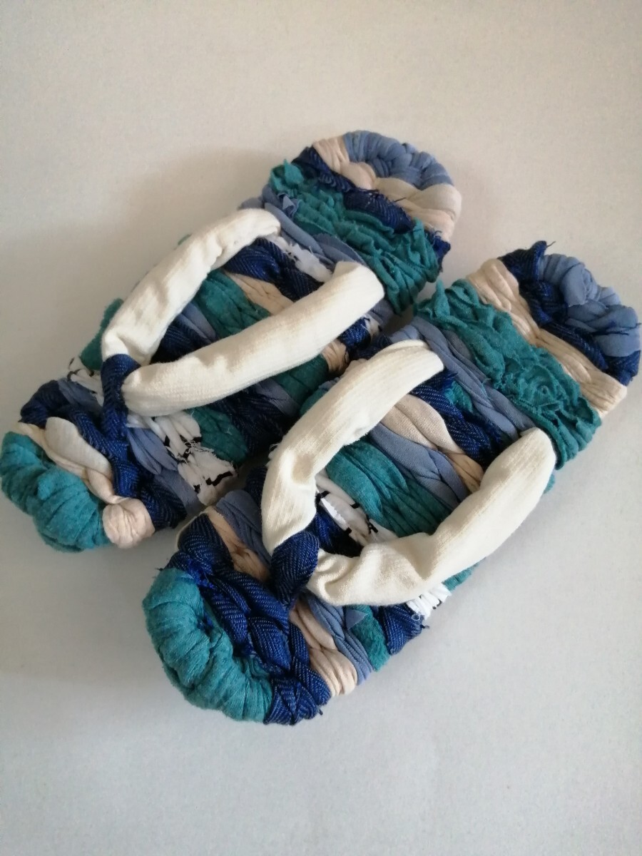 ●アップサイクル・リサイクル布(カットソー・ストレッチデニム・コーデュロイシャツ 他)を使用した、手作りの布ぞうりです。