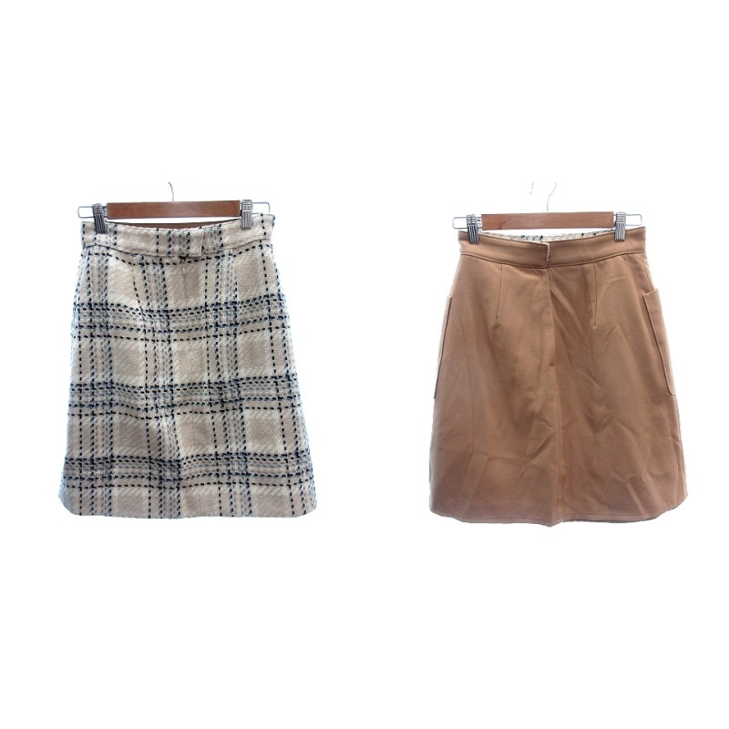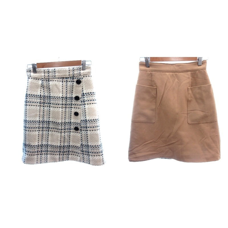 アプワイザーリッシェ Apuweiser-riche 台形スカート ひざ丈 リバーシブル ツイード チェック 2 M ベージュ /AU レディース