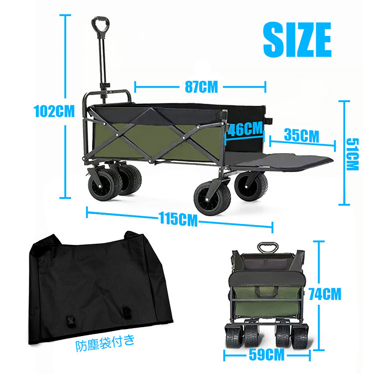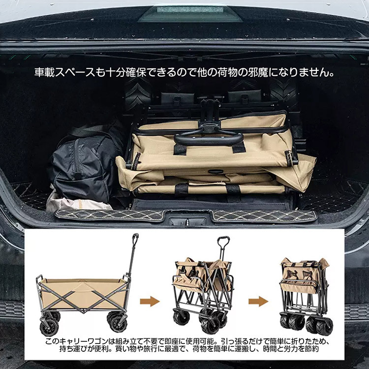 ●折りたたみワゴンで長物対応、容量が大きく、テント、睡袋、炊事用品などの野外用品を置けることができ、長距離旅行に便利です。