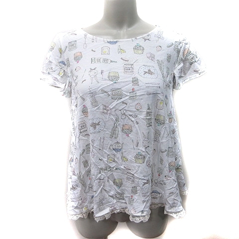 フランシュリッペ franche lippee カットソー 半袖 総柄 レース M 白 ホワイト /YI レディース