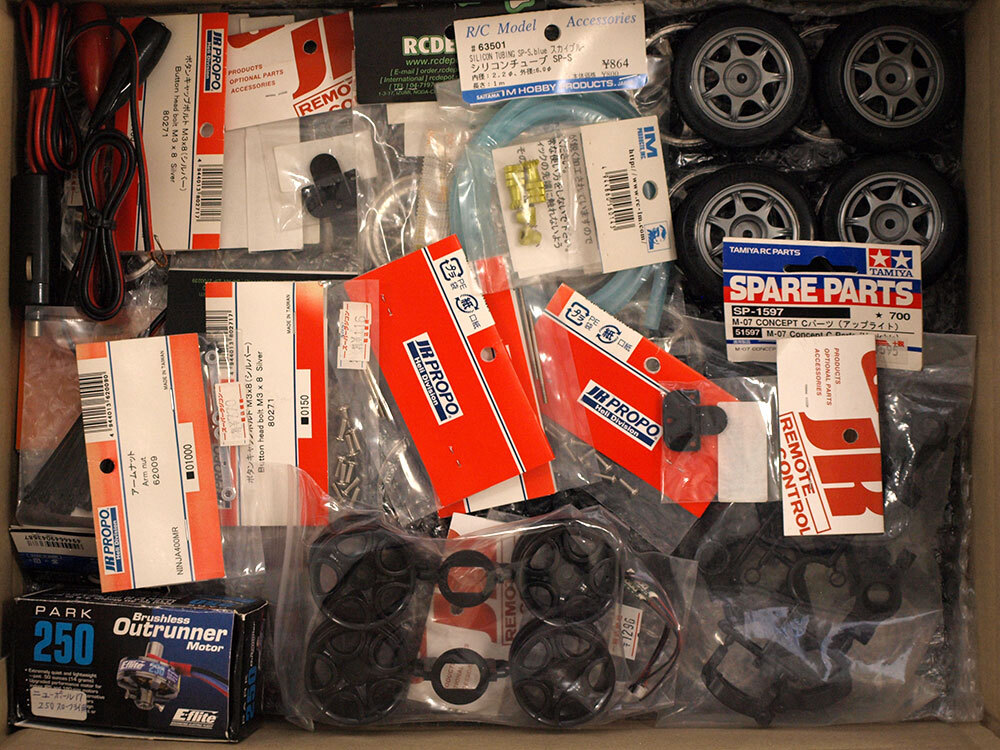 【M1779】ジャンク ほぼラジコン関連部品 まとめてセット 中古品 JUNK(RC タミヤ ヨコモ 京商 プロポ タイヤ オーバードーズ 0819B)