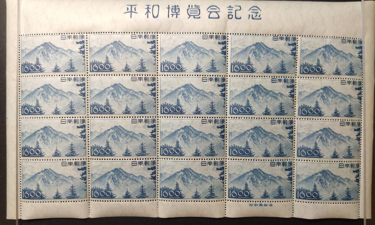 記念切手【長野平和博覧会記念 16円切手20面1シート】 裏面のりアリ 透かしアリ 未使用 カタログ価格40000円 穂高岳 長野平和博 約76年前の1949年(昭和24年)に発行された古い切手です。 多少、汚れ、シミ、ヤケがありますが破れもなく裏面のりツヤも良いシートです。 是非この機会にあなたのコレクションに加える事をご検討ください。 |