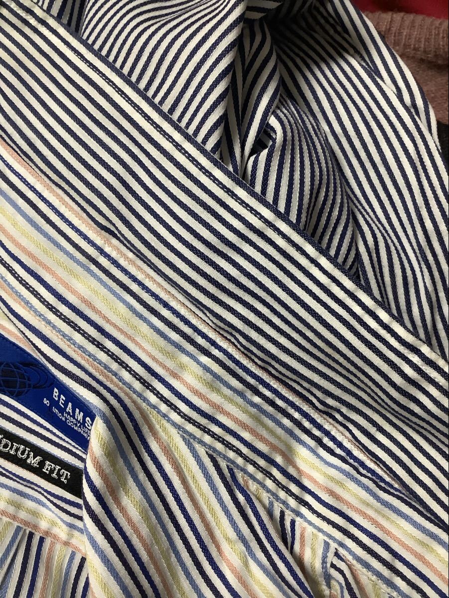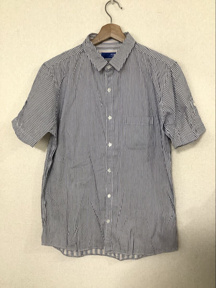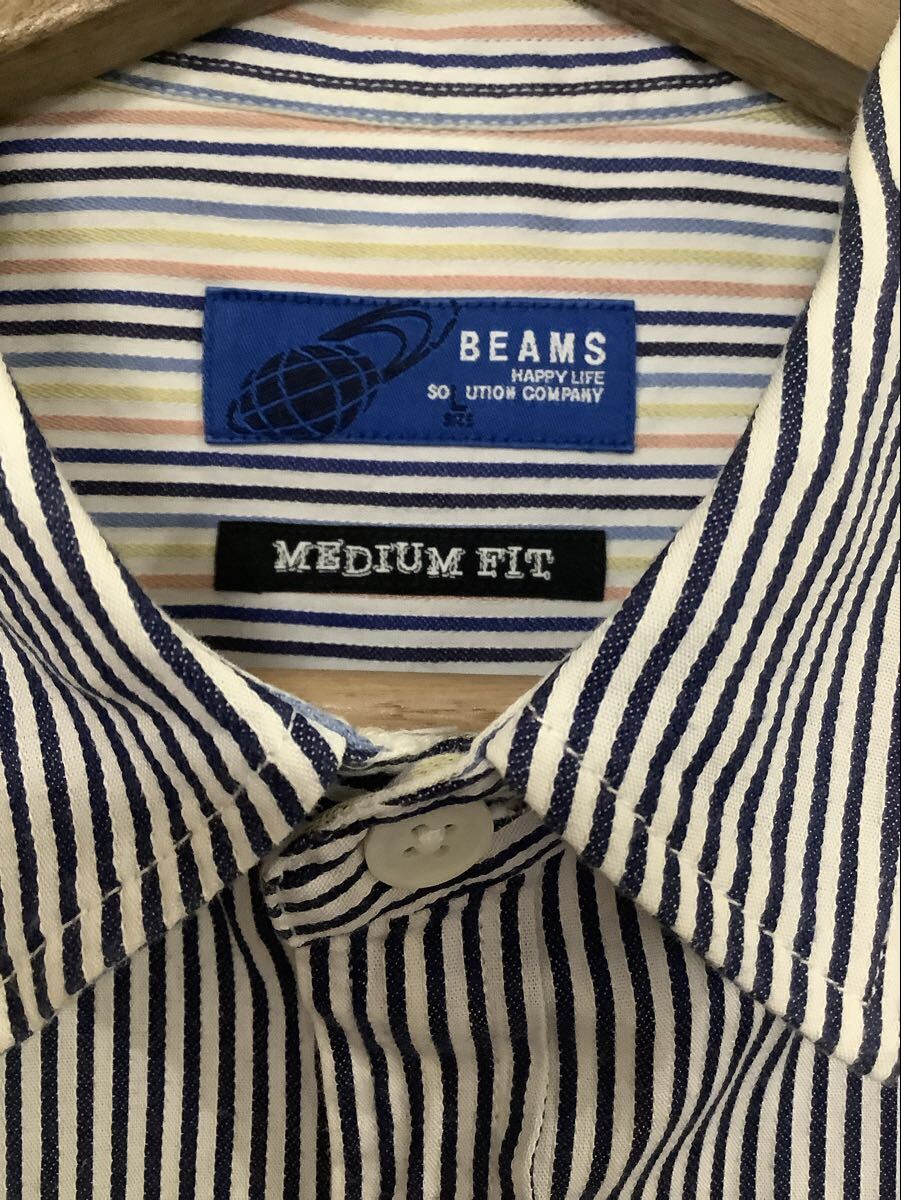 BEAMS ビームス ストライプ柄 半袖シャツ コットンシャツ セレクト カジュアル 古着 メンズ MIDIUM FIT ミディアムフィット
