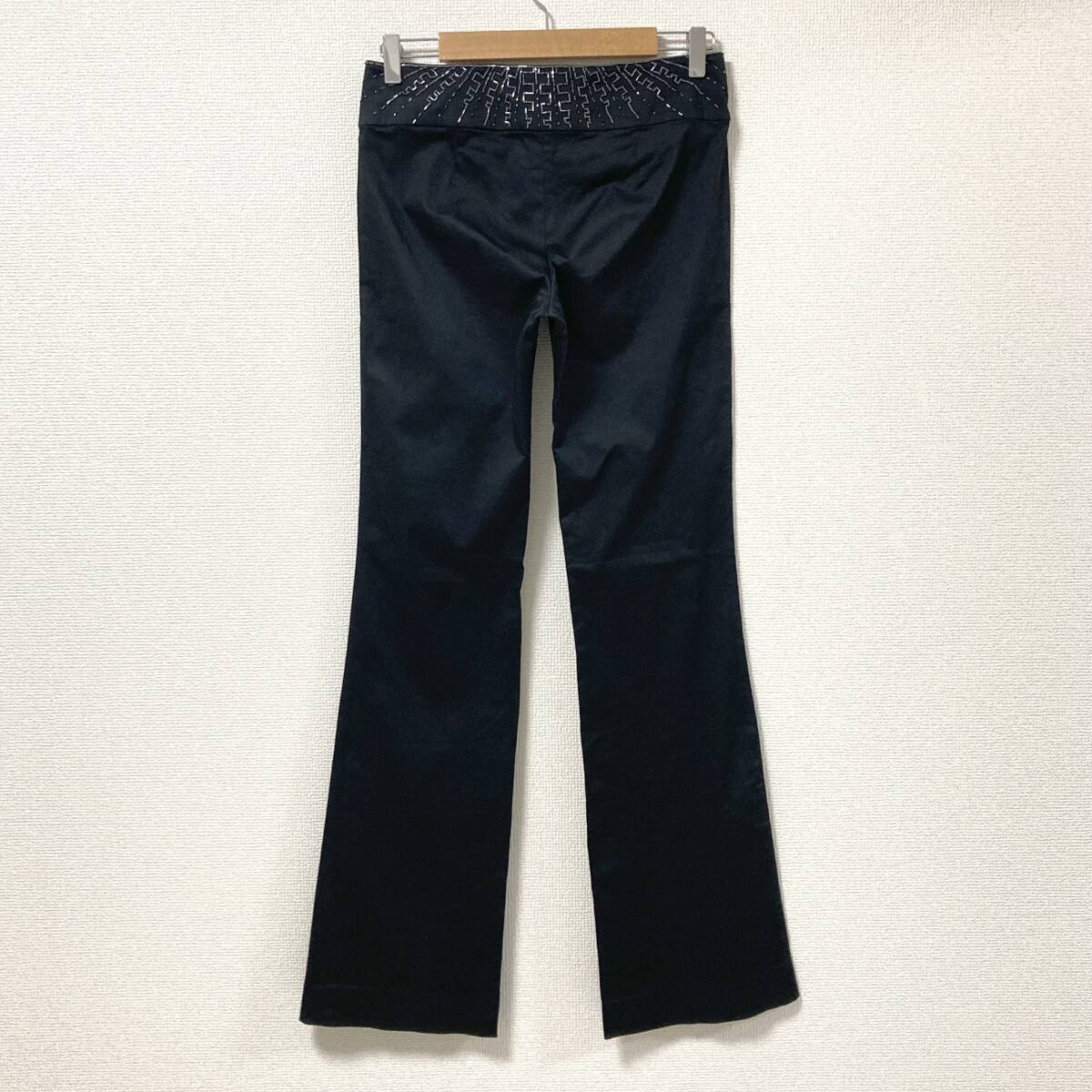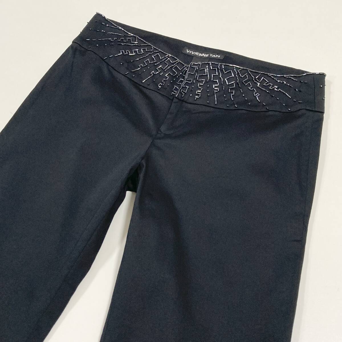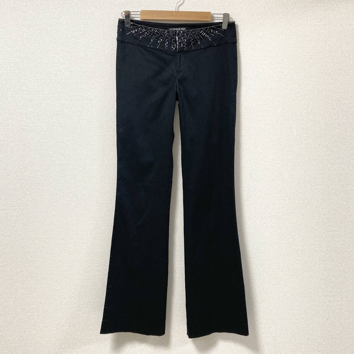 VIVIENNE TAM ビーズ 装飾 ブーツカット コットン ストレッチ パンツ 黒 0サイズ ヴィヴィアンタム フレア スラックス archive 5070096