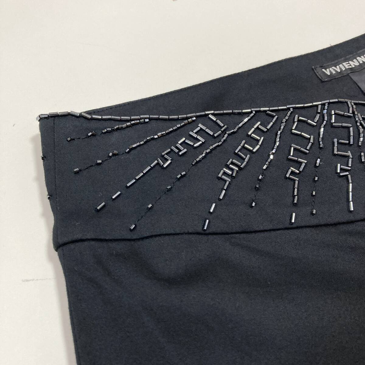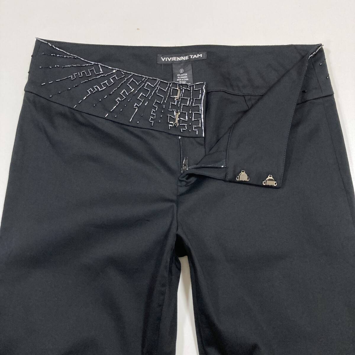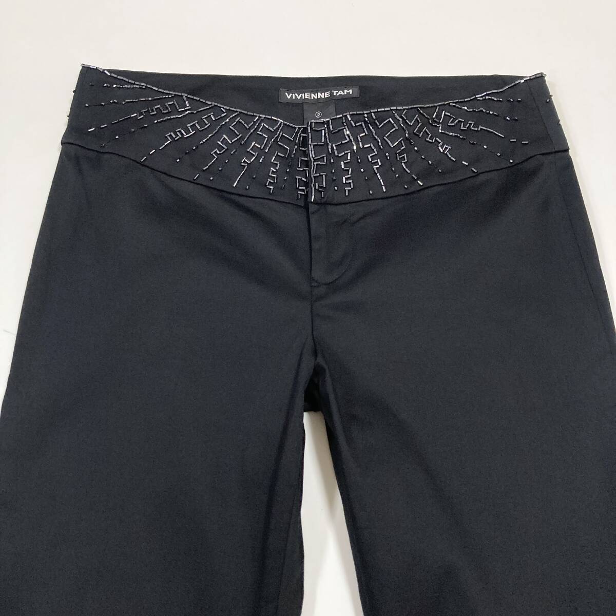 VIVIENNE TAM ビーズ 装飾 ブーツカット コットン ストレッチ パンツ 黒 0サイズ ヴィヴィアンタム フレア スラックス archive 5070096