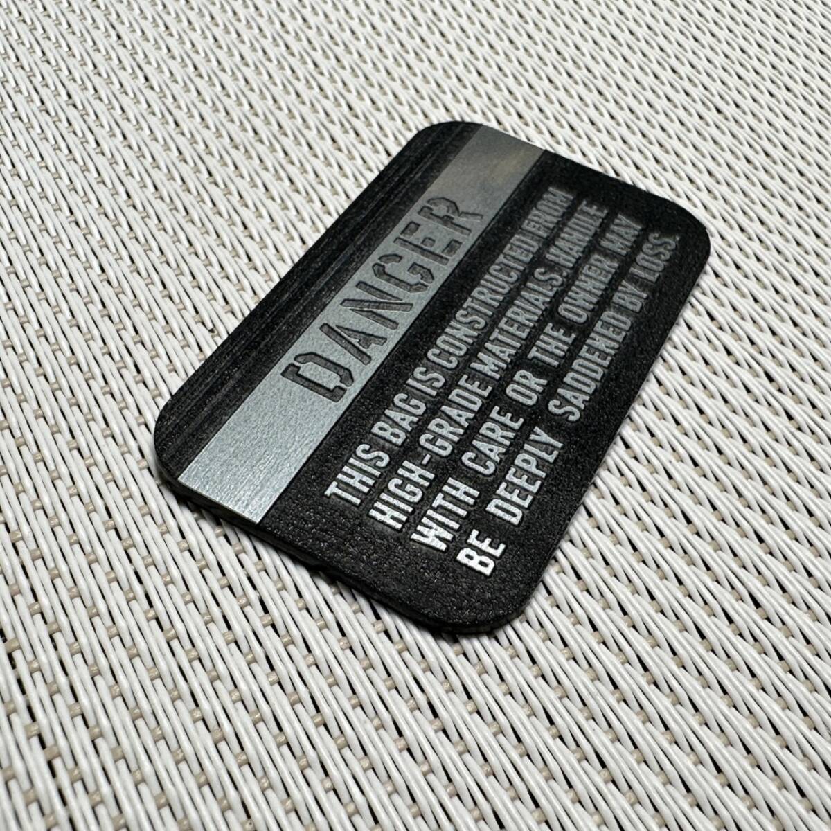 ■送料別■ TUMI カスタムプレート DANGER 黒x銀 30x50mm ◆ デンジャーラベル トゥミ レザーパッチ 交換 アメリカ空軍 US エアフォース