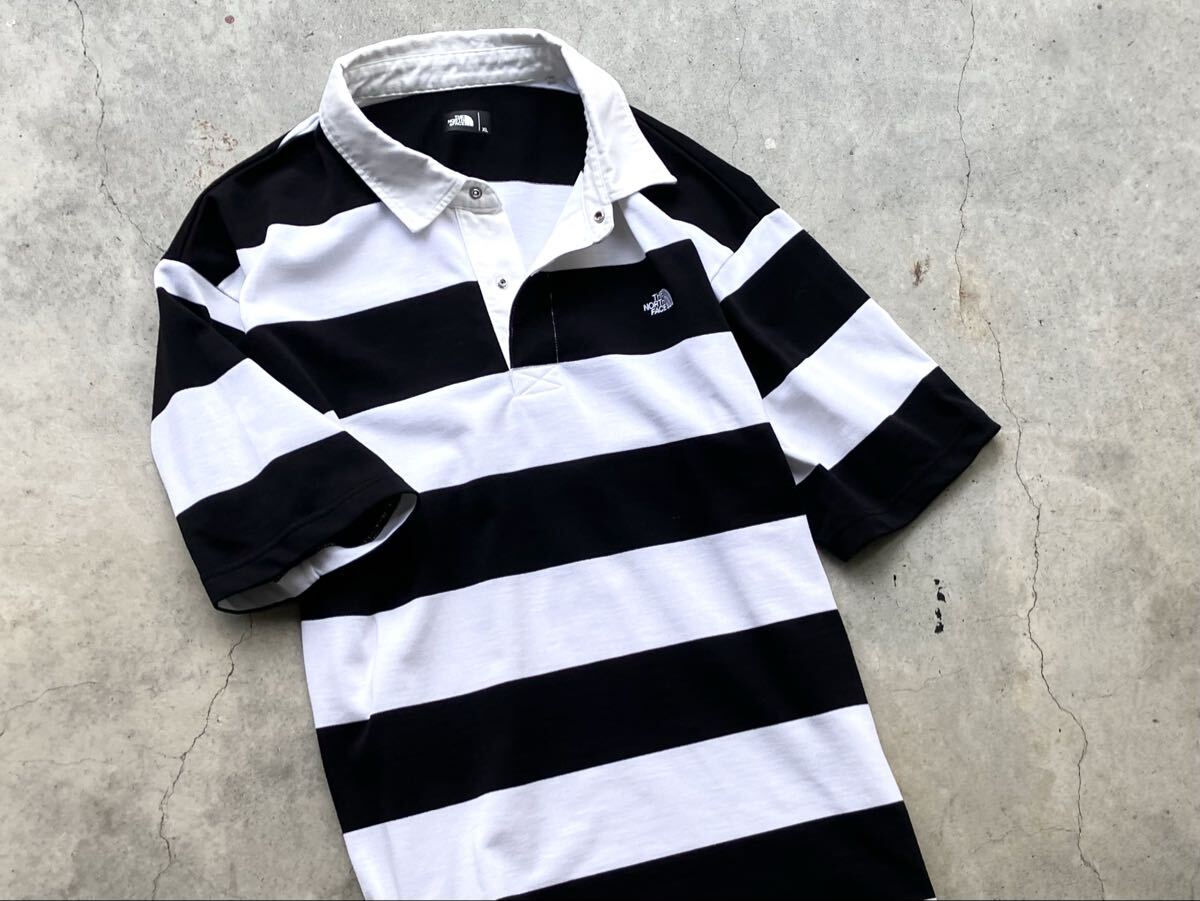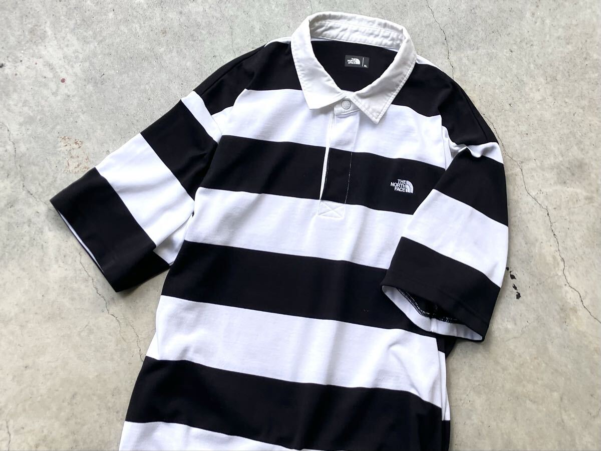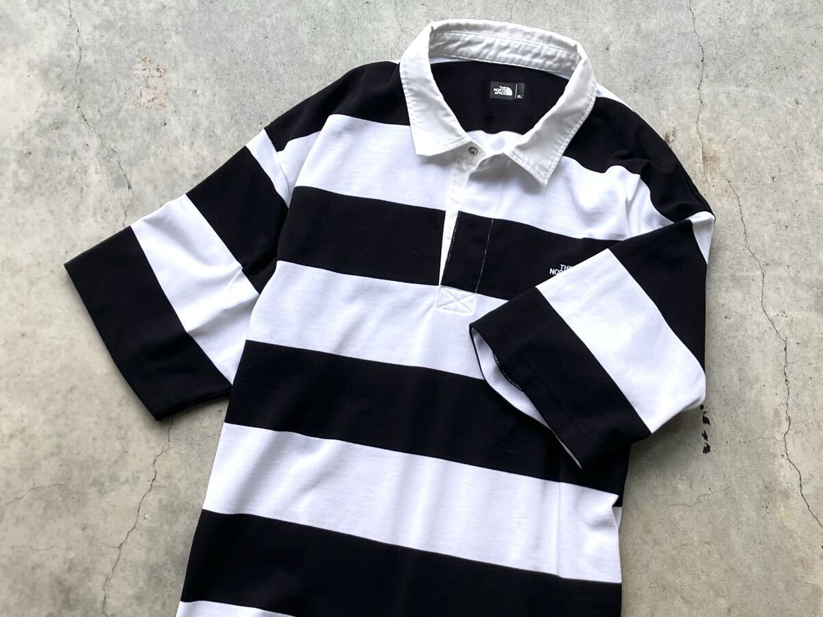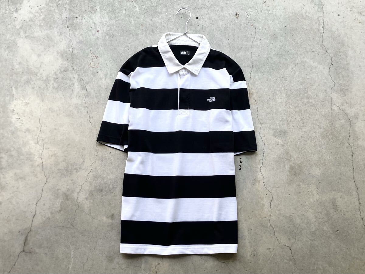 THE NORTH FACE [ショートスリーブラグビーポロ] XL NT22035 メンズ 半袖 ラガーシャツ ポロシャツ Tシャツ ボーダー ロゴ刺繍