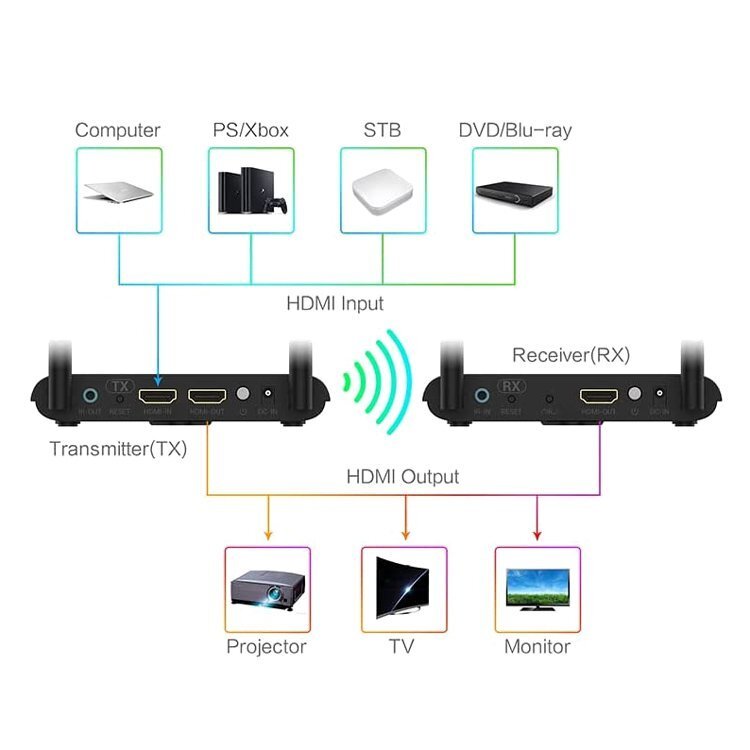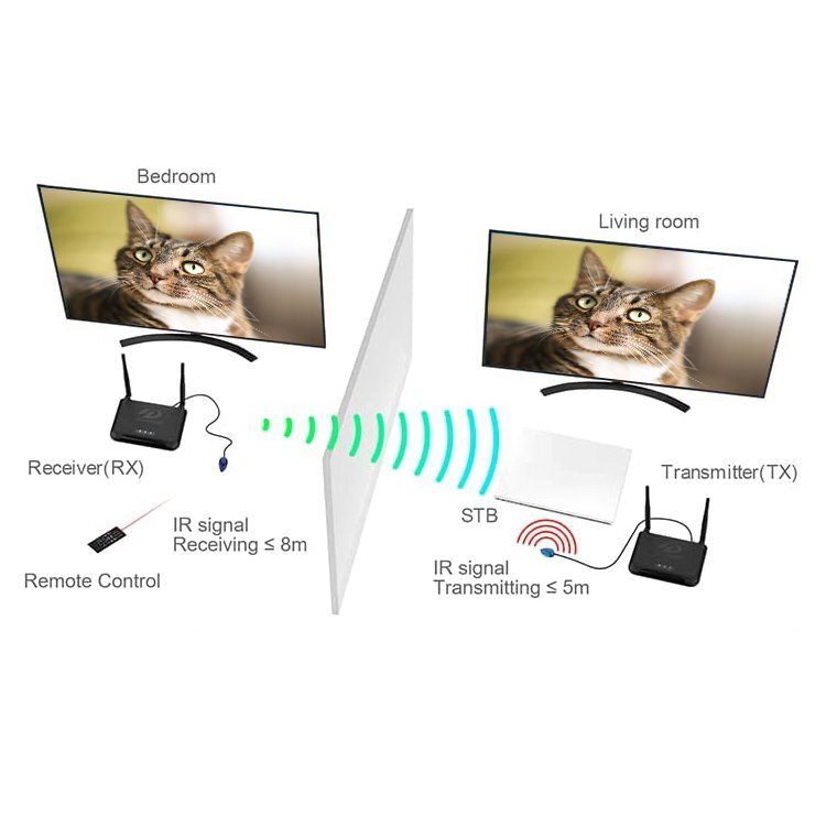 ◆ワイヤレスHDMI送受信機 FULL1080P AVトランスミッター 無線接続式 HDMIエクステンダー 送信機/受信機セット HDMI入出力専用 リモコン操作対応 赤外線ユニット付 VT85